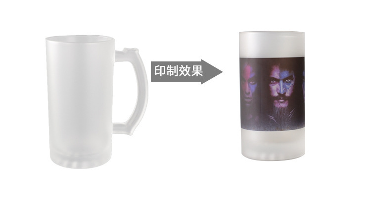 Sublimation Beer Steins 16Oz Large Capacity Transparent Frosted Glass Cup Creative Personalized Printed Image Logo Blank Cup 中文版