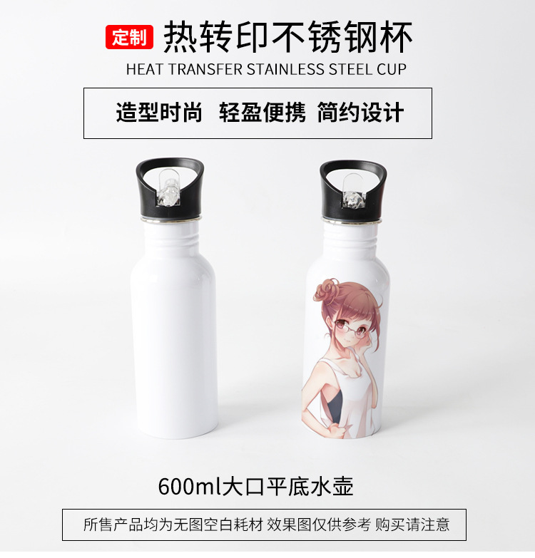 Heat Transfer Printing Large Mouth Sports Kettle Sublimation Blank Kettle Personalized Creative DIY Printable Picture Stainless Steel 中文版