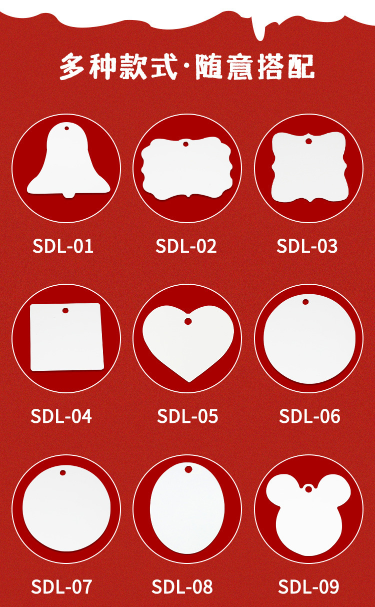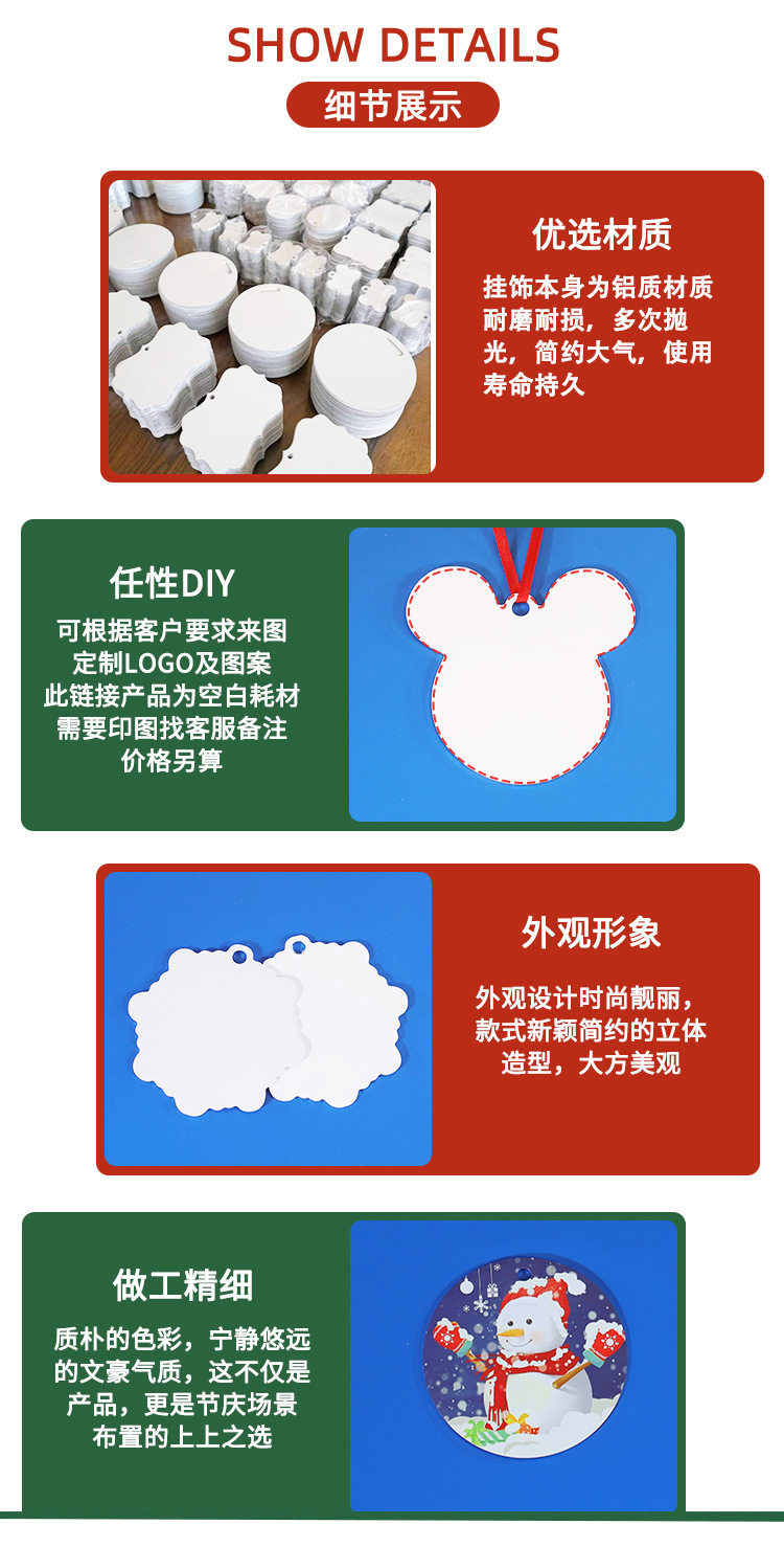 Thermal Transfer Printing Aluminum Sheet Pendant Personality Creative Pendants Sublimation Blank Consumables Aluminum Sheet Pendant 中文版
