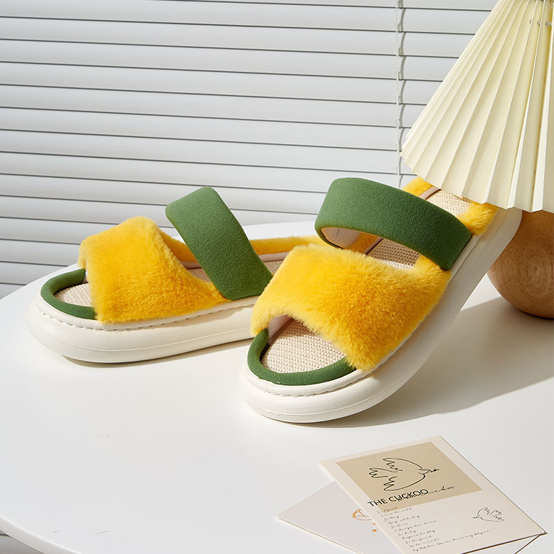 spring and summer linen slippers girls and boys couple's slippers candy color plush fabric four seasons slippers floor linen slippers