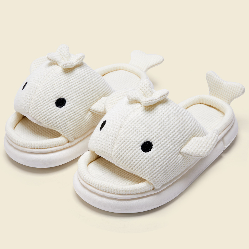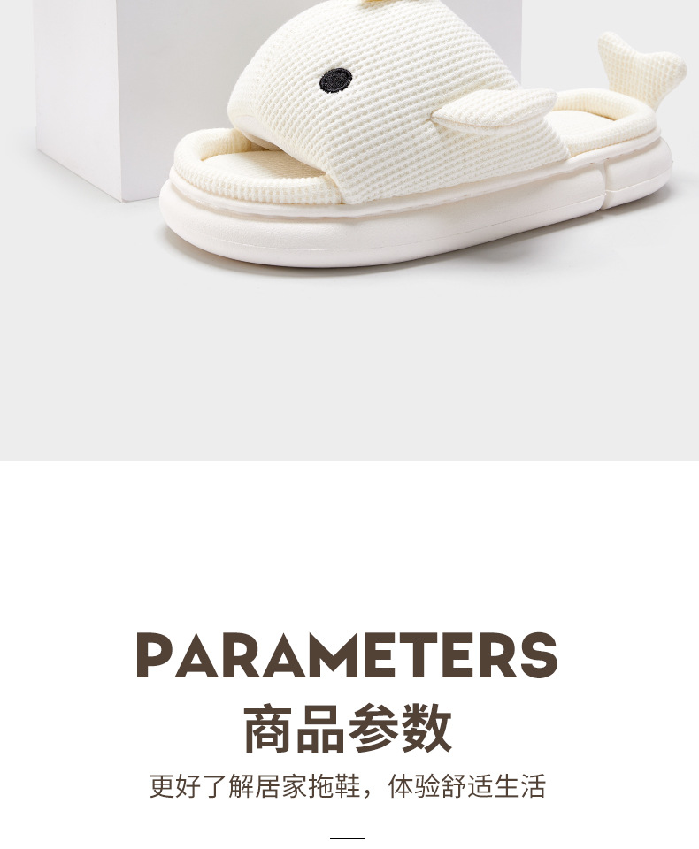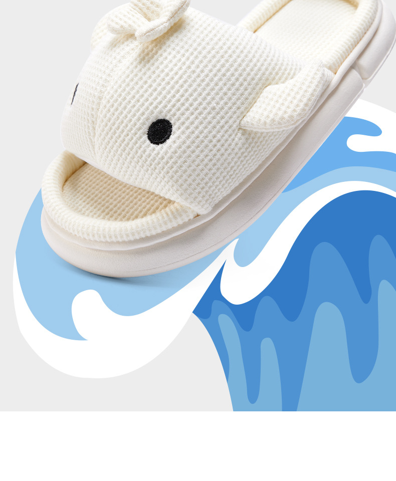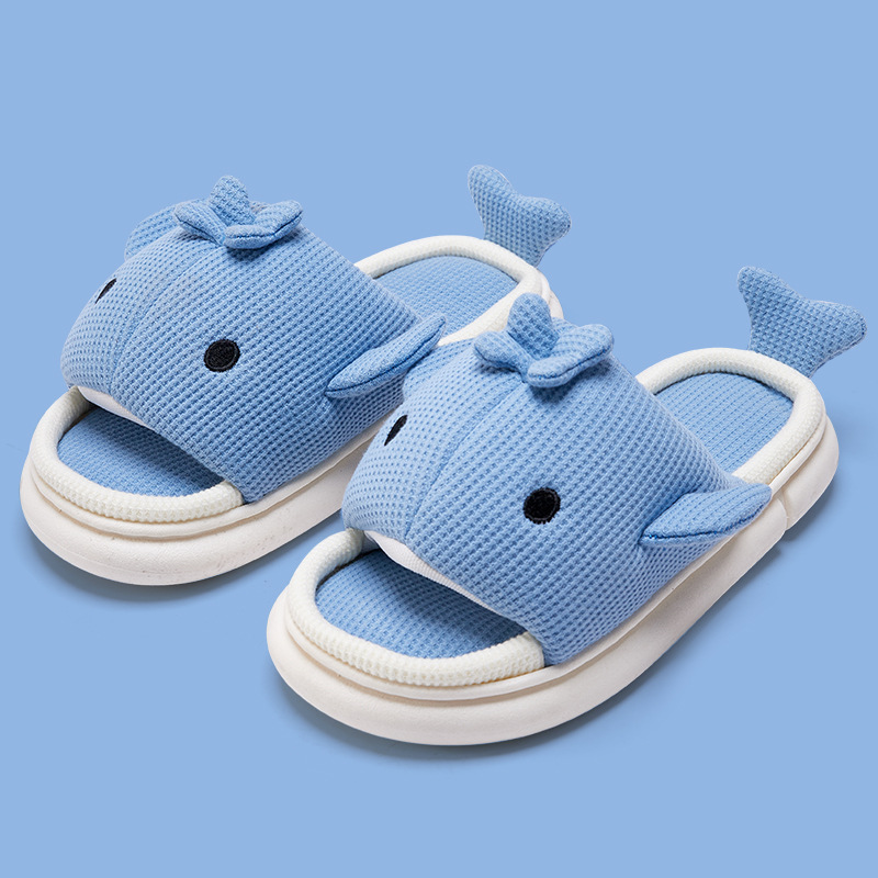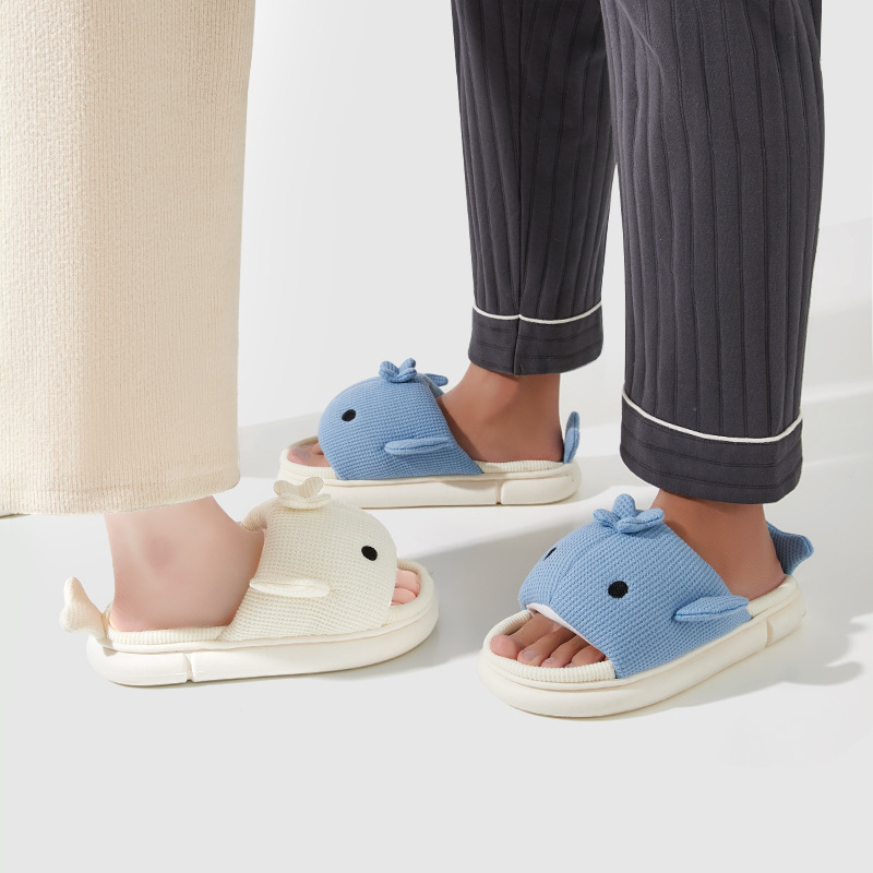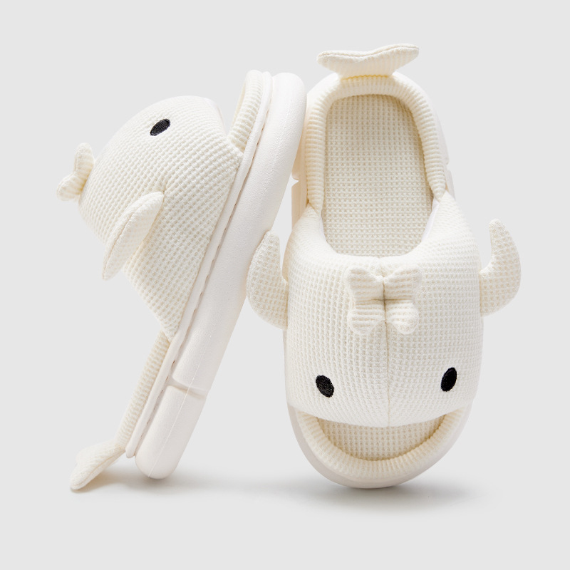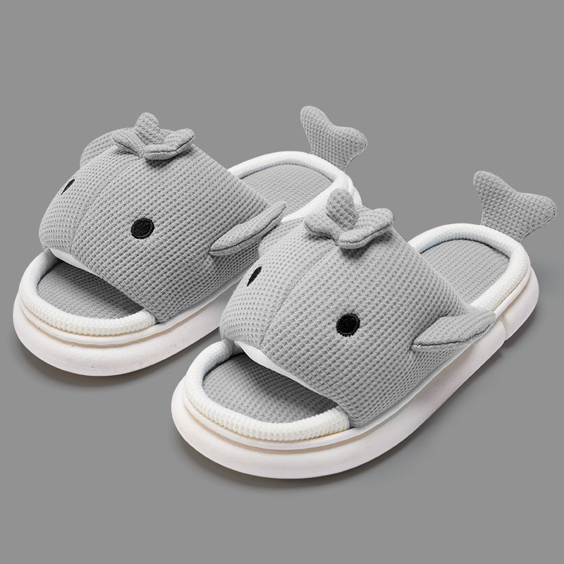 shark slippers indoor home linen men's spring and autumn home mute sweat-absorbent thick bottom cartoon couple cotton and linen slippers women 中文版