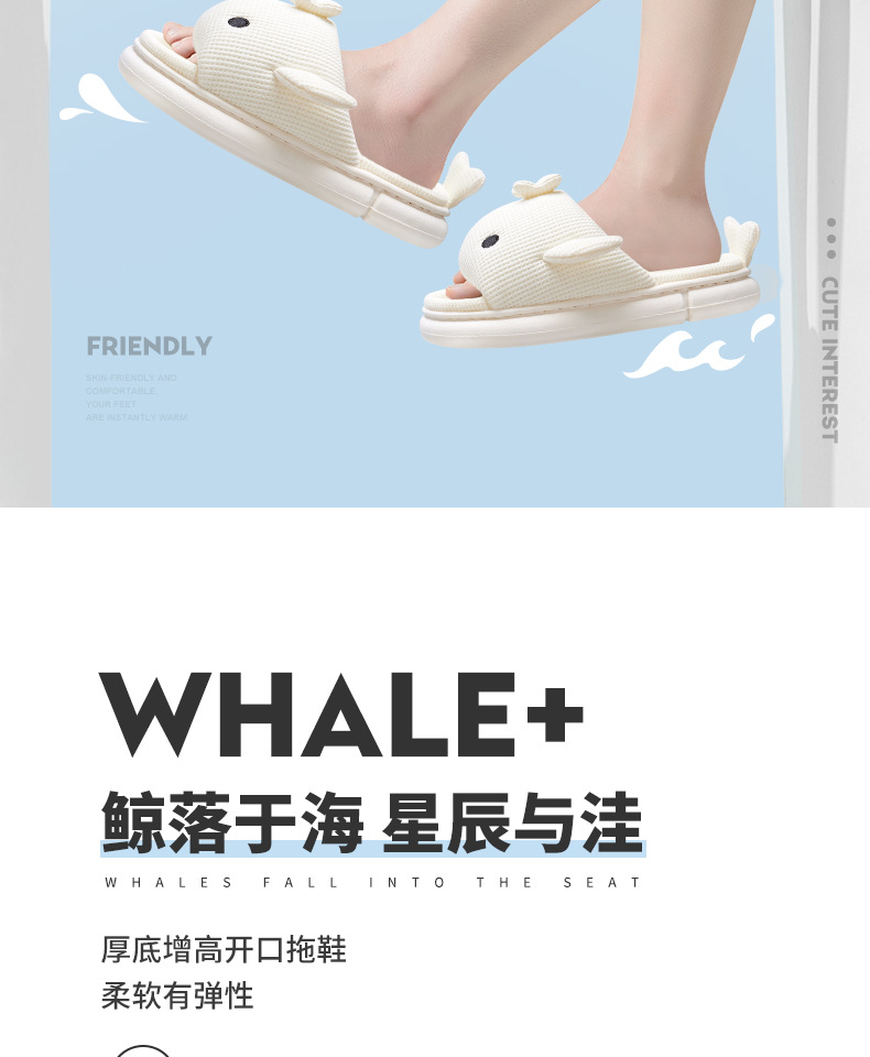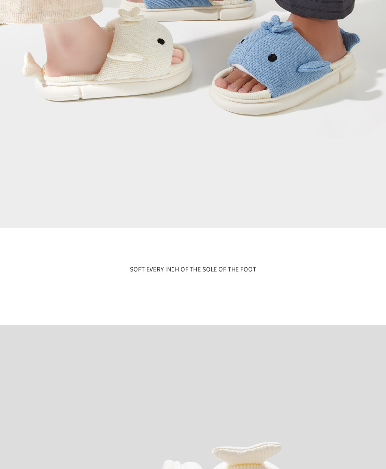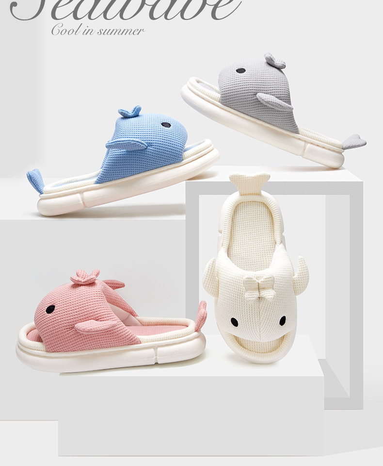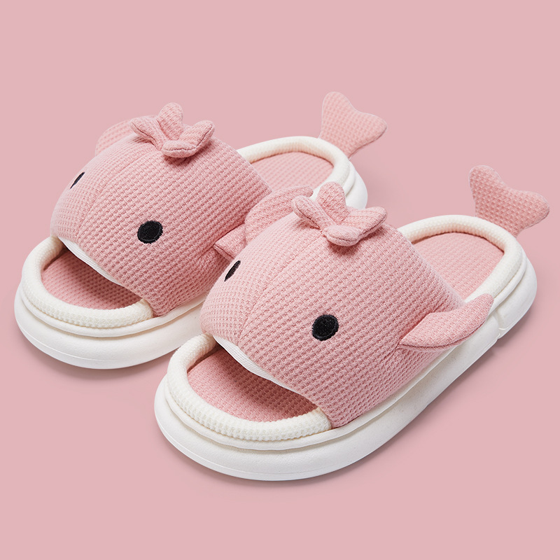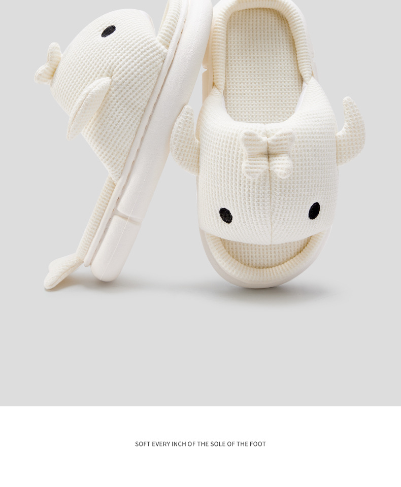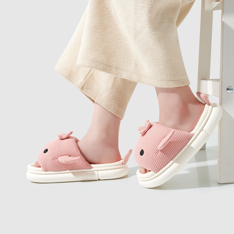 shark slippers indoor home linen men's spring and autumn home mute sweat-absorbent thick bottom cartoon couple cotton and linen slippers women 中文版