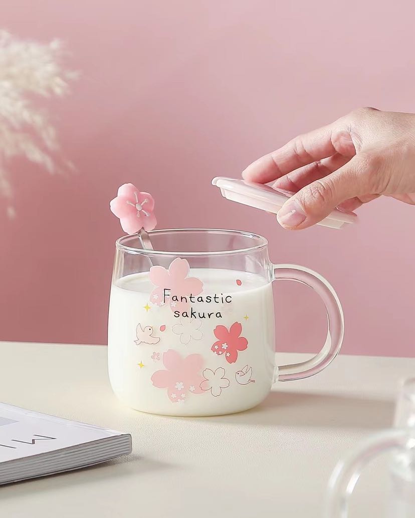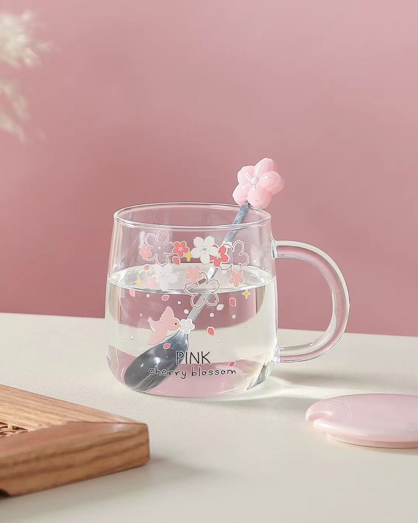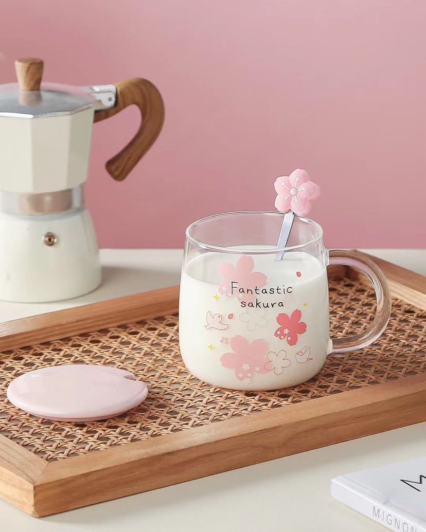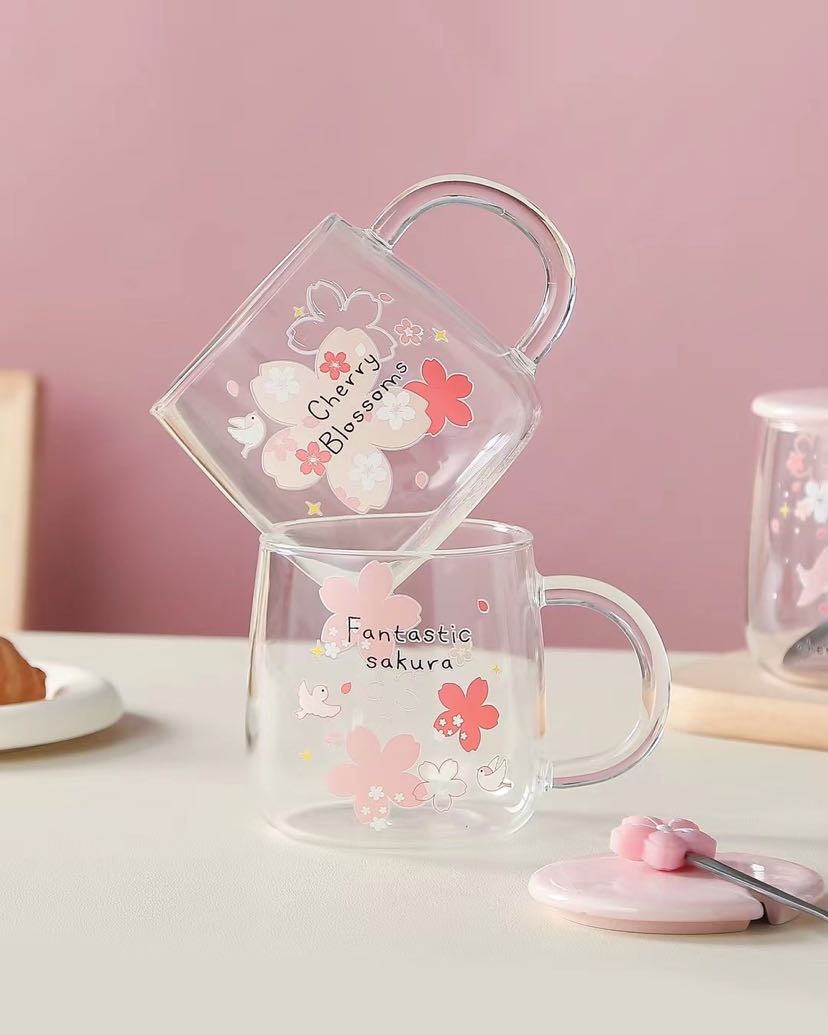 glass cup high borosilicate glasses rabbit sakura cup juice cup transparent cup coffee cup office water glass 中文版