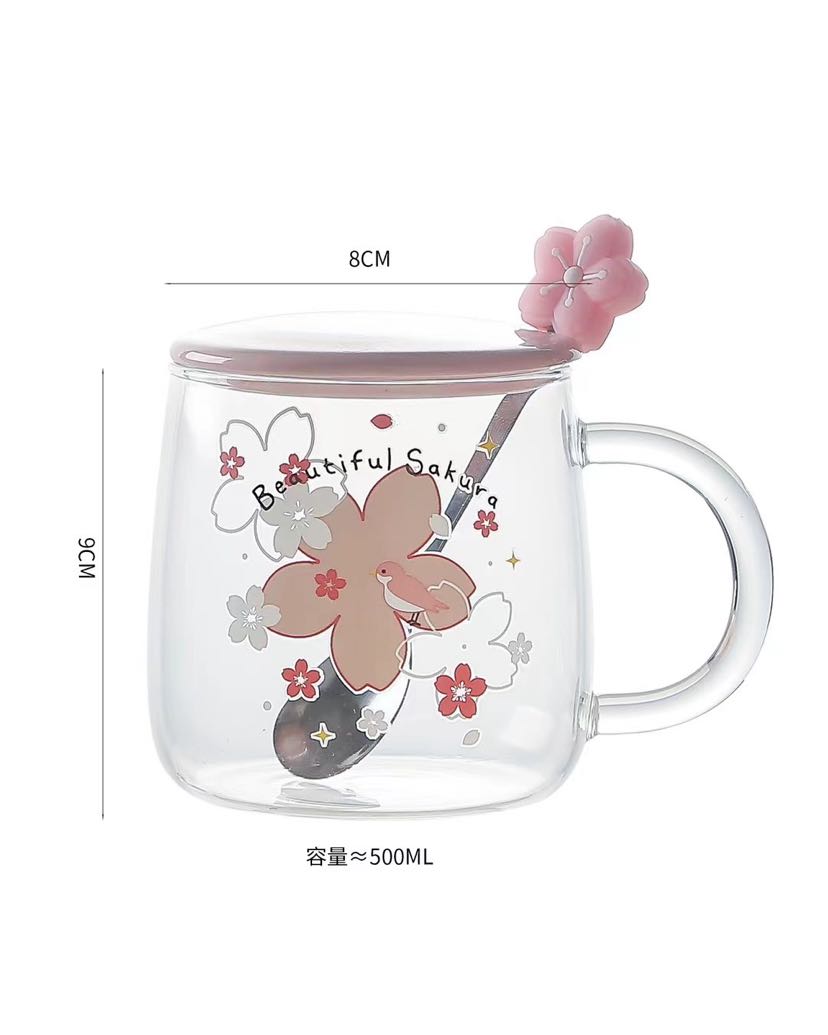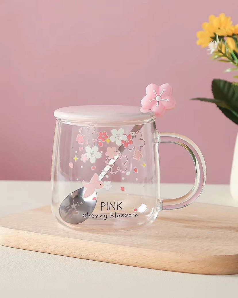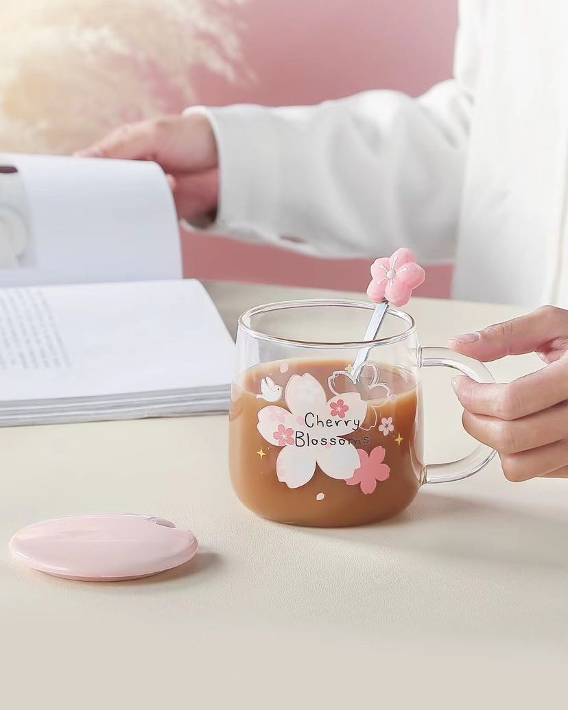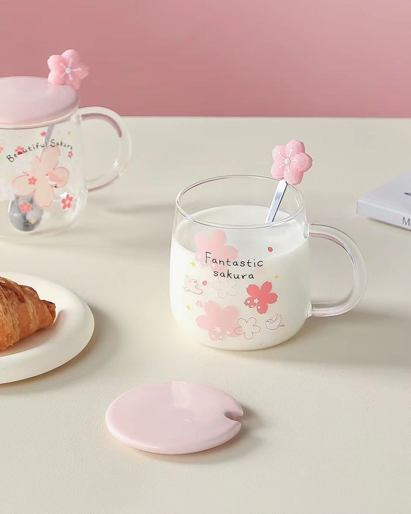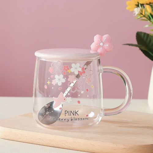 glass cup high borosilicate glasses rabbit sakura cup juice cup transparent cup coffee cup office water glass 中文版