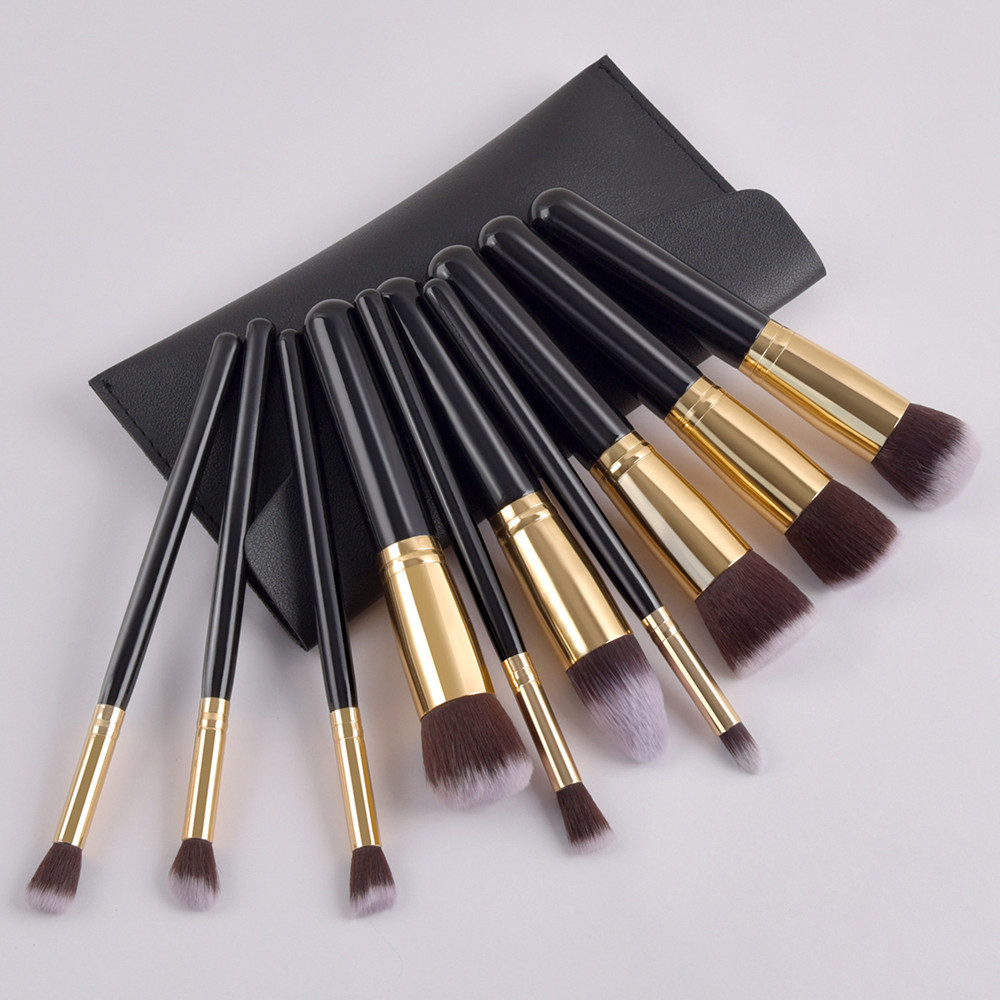 【Product Name】: 10-piece makeup brush set with 5 large and 5 small black and gold brushes