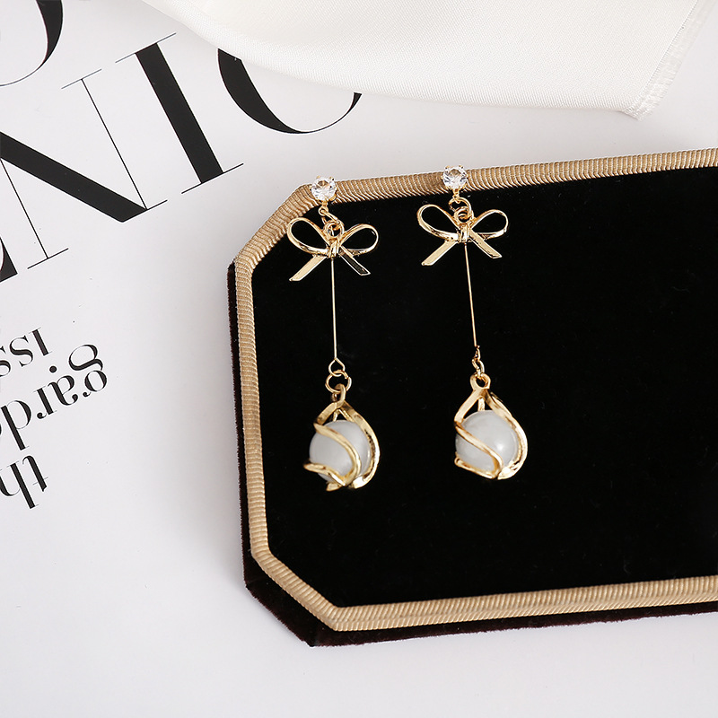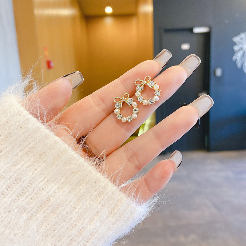 1# tiny bow o line earrings-silver needle