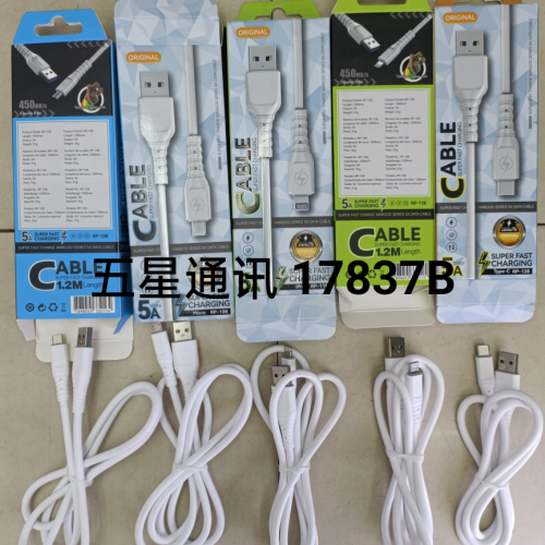 1.2M White Data Cable Mobile Phone Data Cable 1.2M 190 Copper Wire in Stock Wholesale 中文版