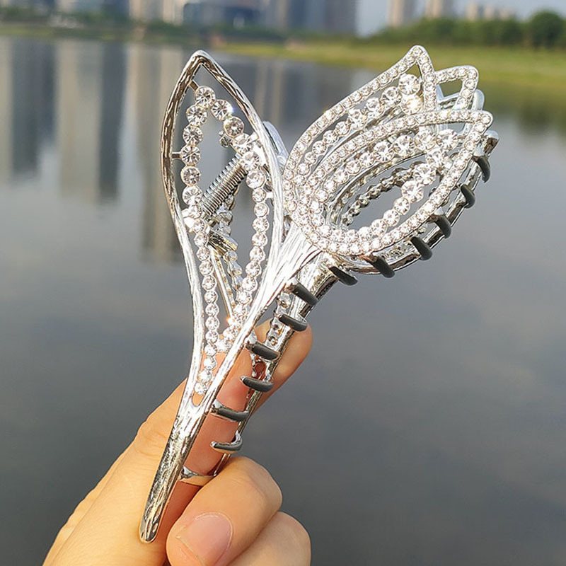 double row rhinestone small flower cross clip