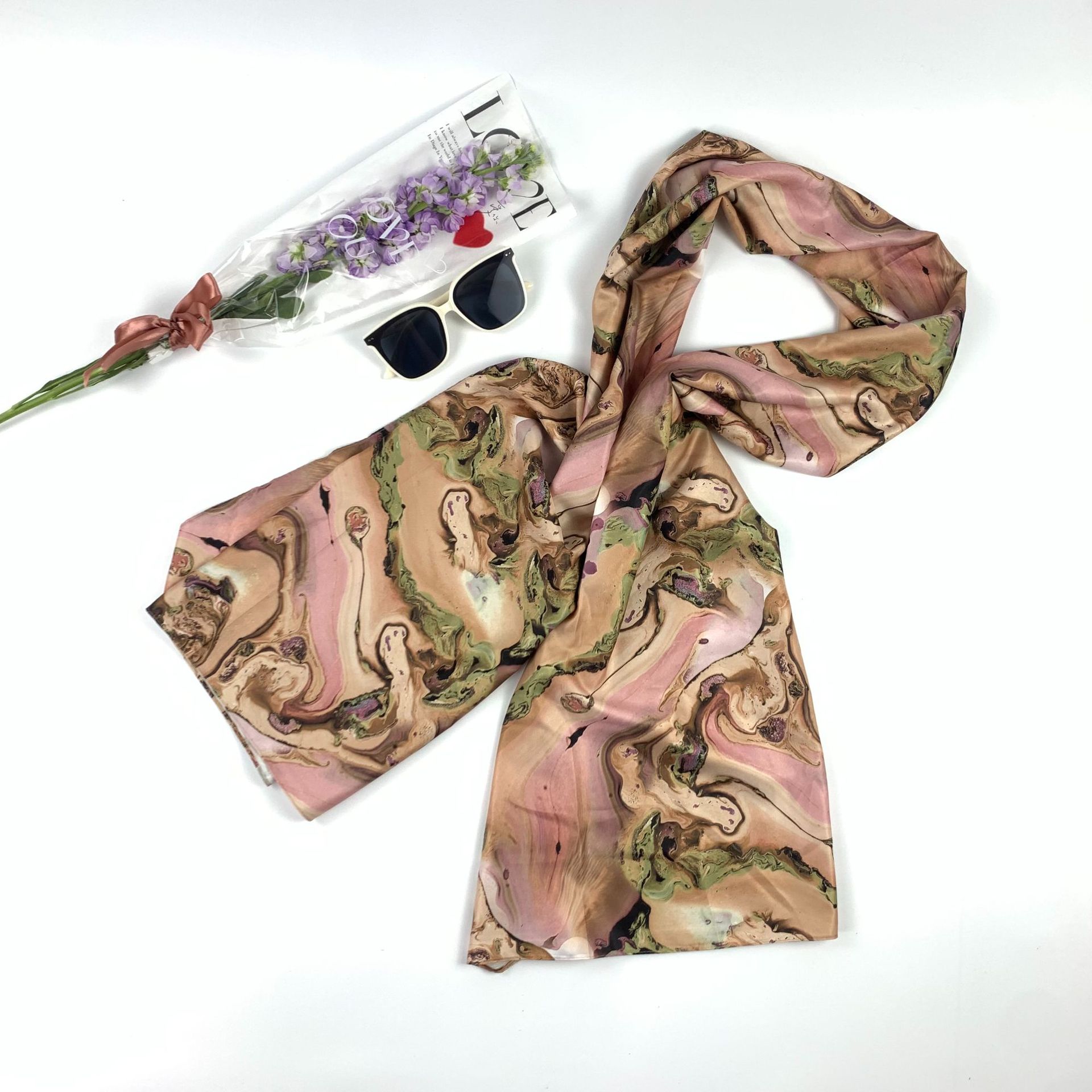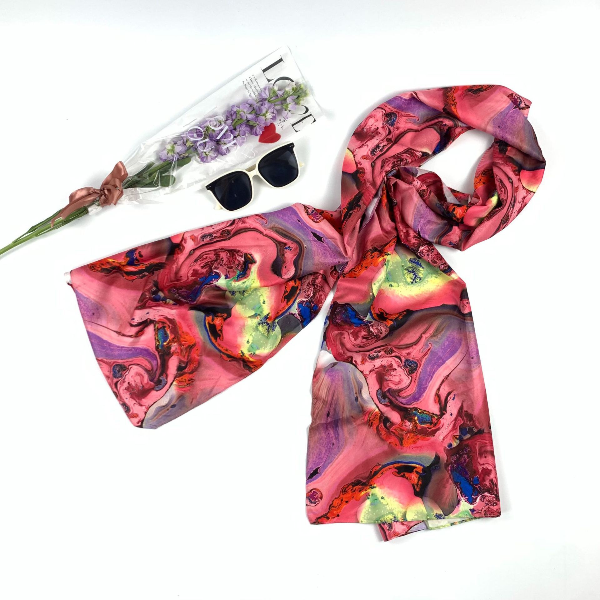 2023 Spring New Korean Style Printed Artificial Silk Women's Scarf Decoration Sun Protection Long Wear Shawl Beach Towel