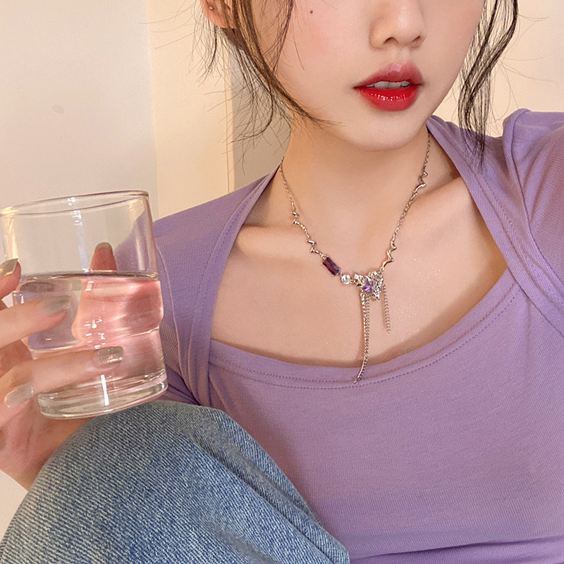 sweet cool cold style purple clavicle chain