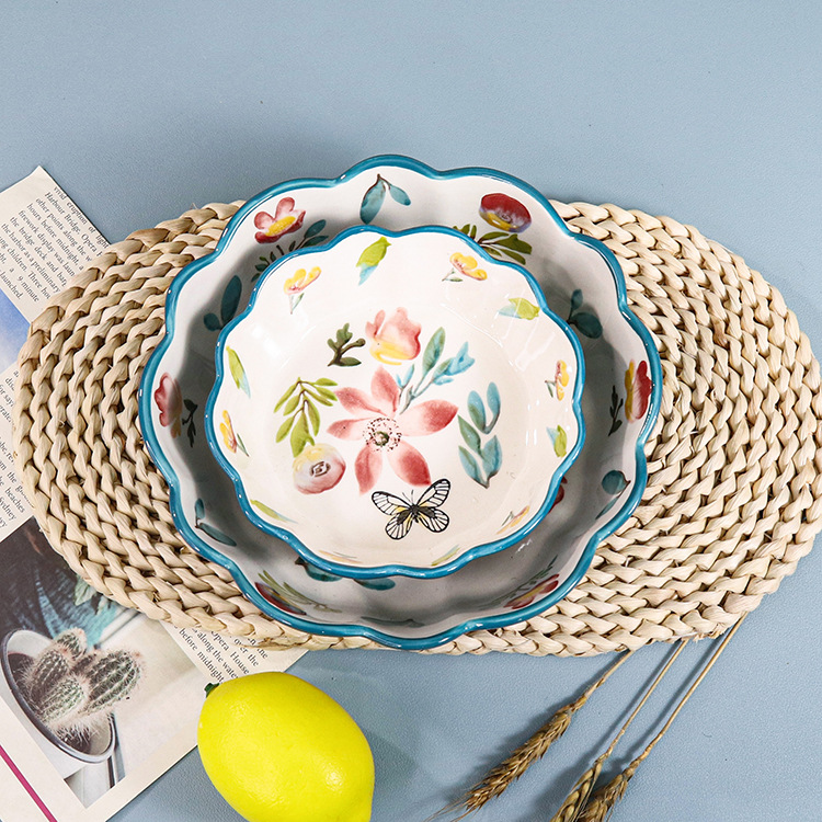 hand-painted ceramic flower baking bowl household baking tray japanese printing soup bowl creative tableware baked rice bowl baking bowl