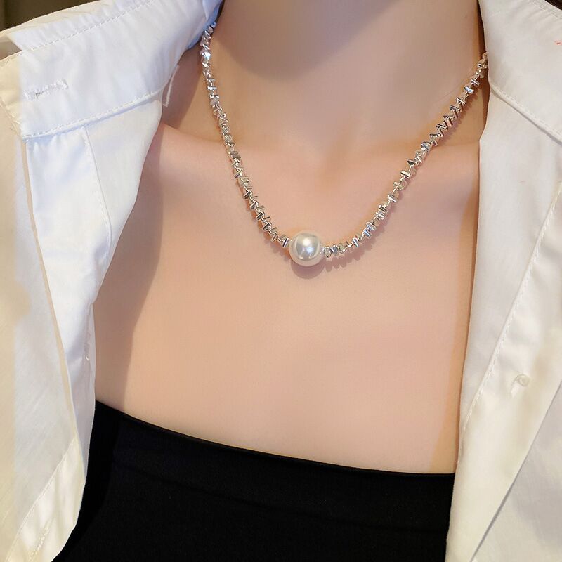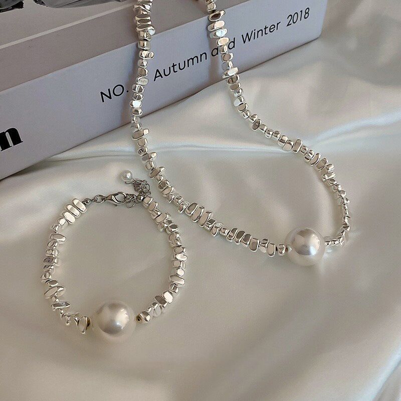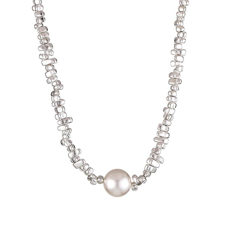 half pearl half broken silver necklace