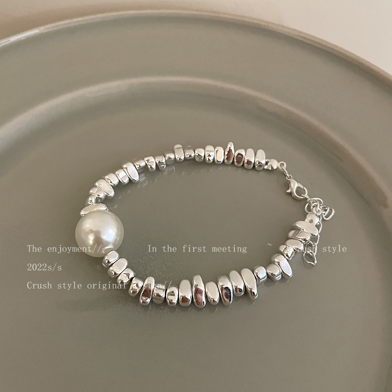 broken silver pearl stitching necklace