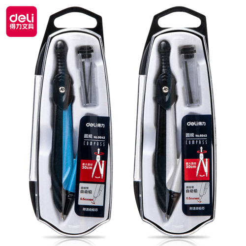 Deli 8643/8644-Metal Mechanical Pencil Compasses/Pencil Compasses Matching 2B Pencil Refill Plastic Box Storage 中文版