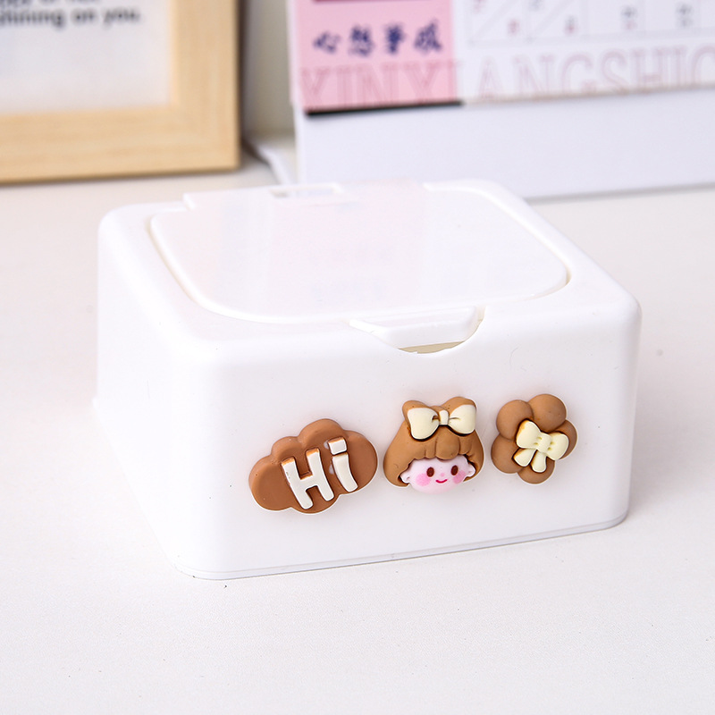 Cartoon Bounce Cover Storage Box Household Jewelry Barrettes Cotton Swab Gadget Finishing Box Desktop Button Dustproof Storage Box 中文版