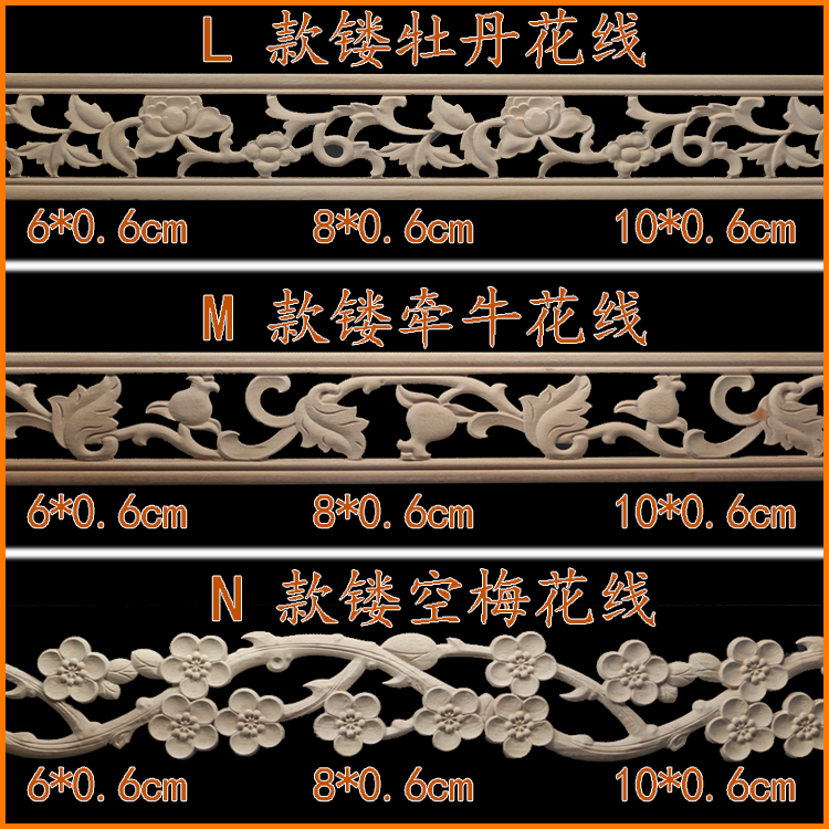 Wood Carving Line Beech Chinese Great Wall Line Back Line Carved Line Wooden Moulding Ceiling Edge Line Photo Frame Decorative Line