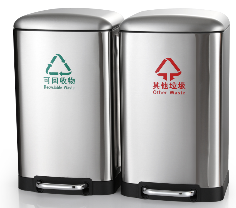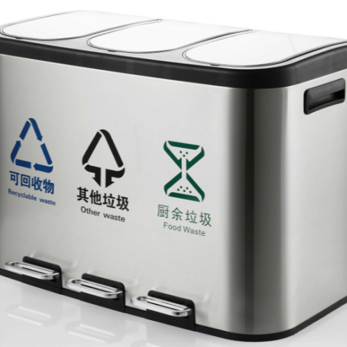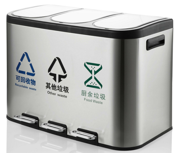 Stainless Steel Pedal Trash Can Commercial Kitchen Office Large Capacity Classification with Lid Foot Mute Trash Can 中文版