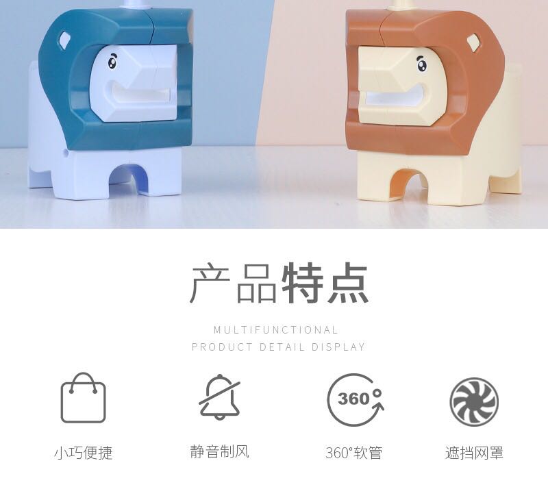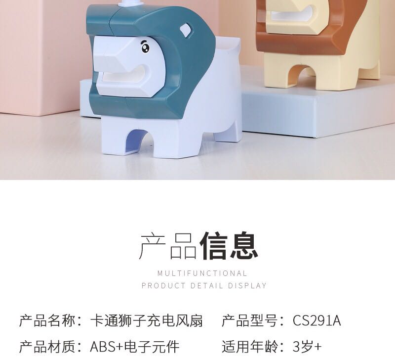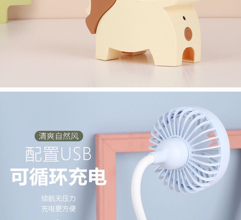 2023 lion-shaped usb rechargeable cartoon little fan children's gift summer cool artifact table-top decoration 中文版