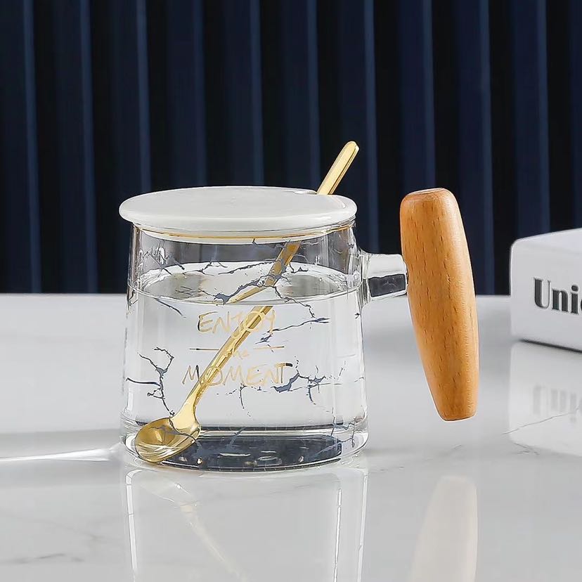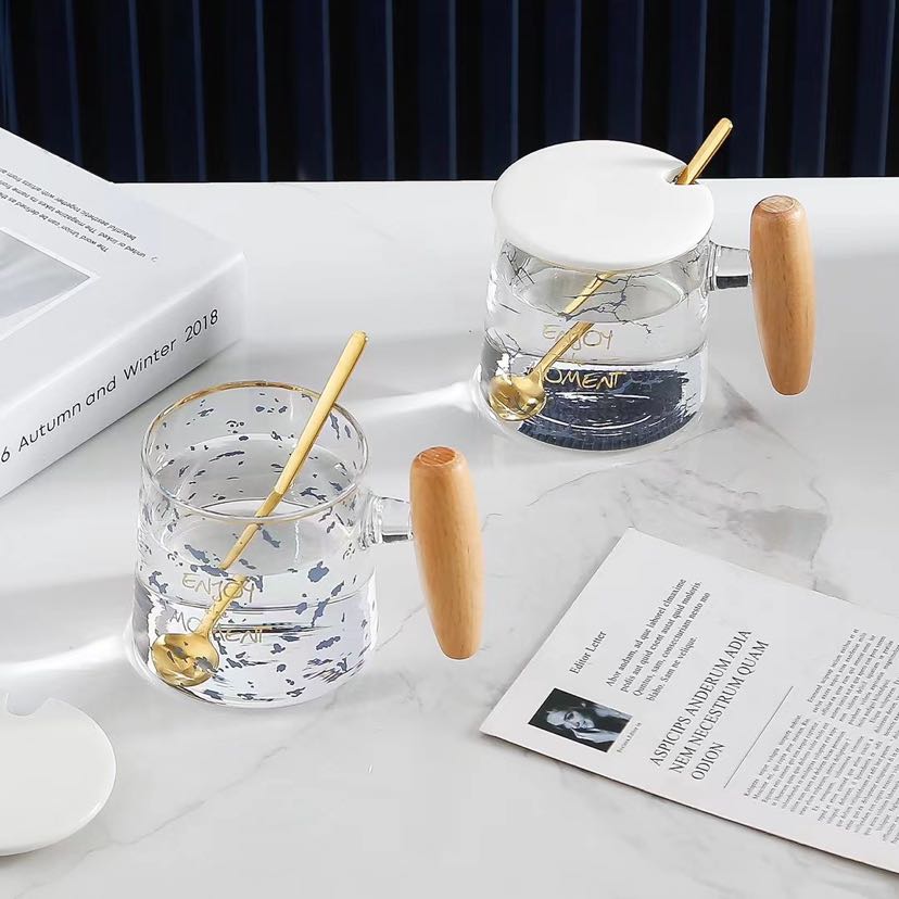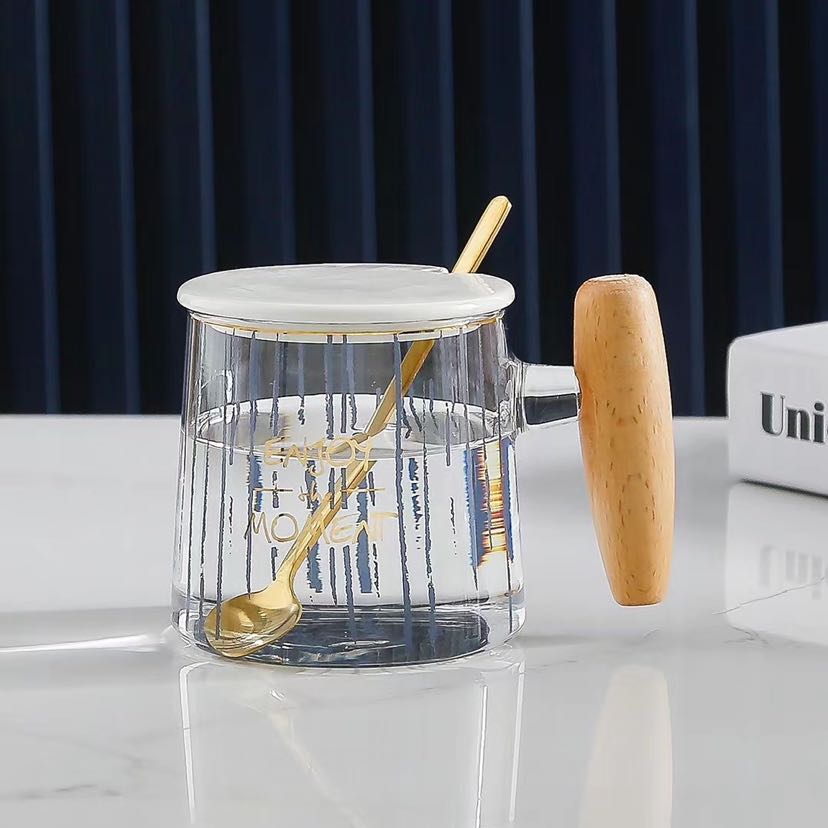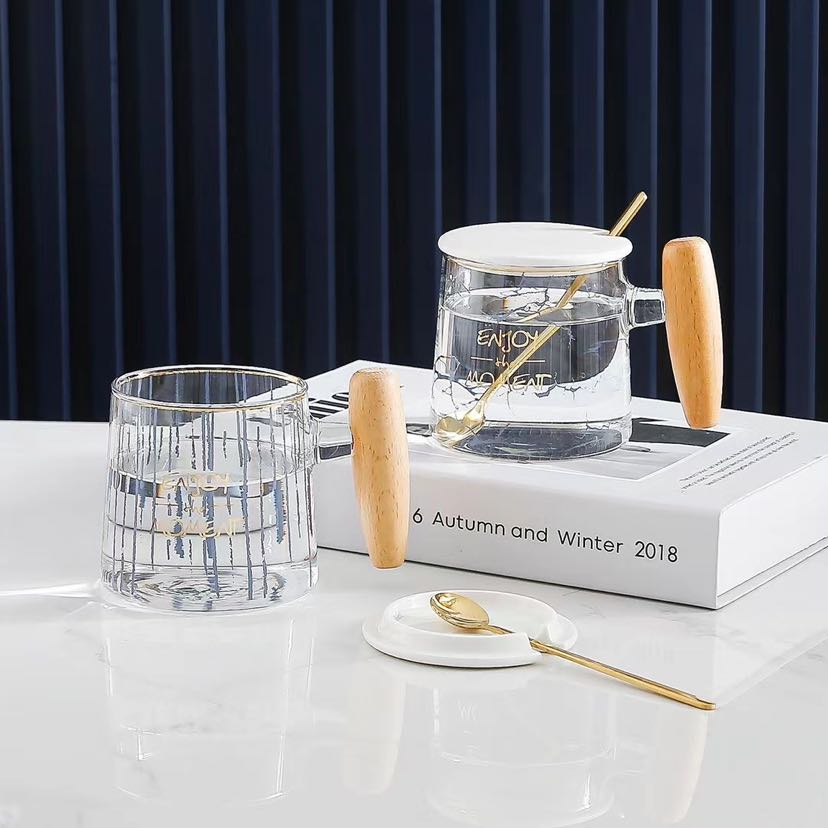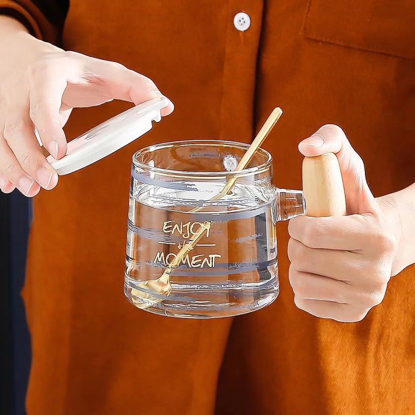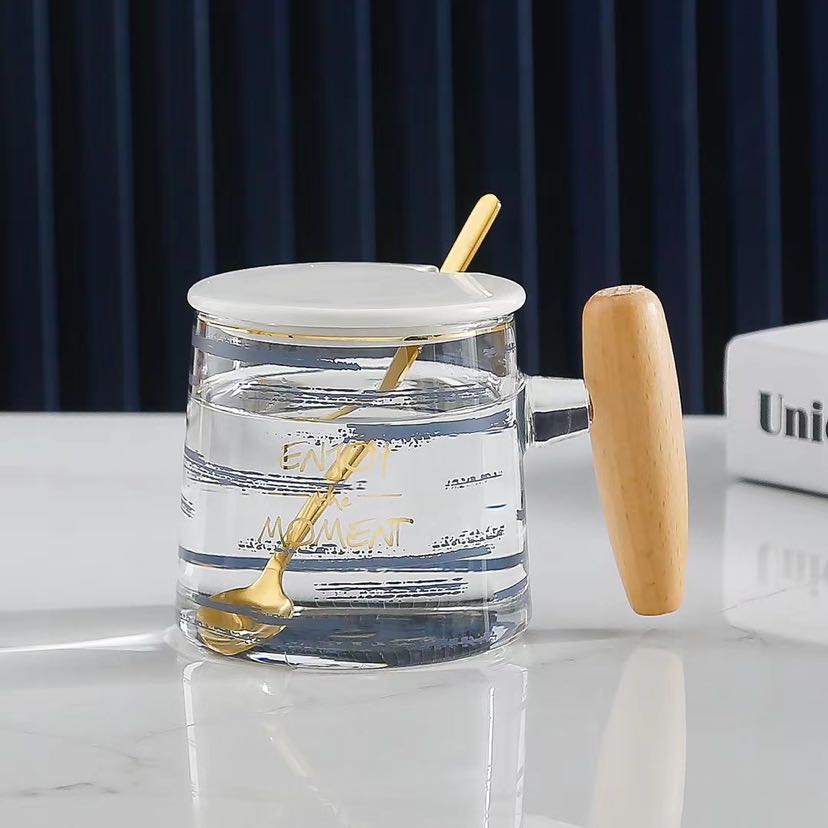 glass high borosilicate glasses light luxury mug simple line wooden handle cup 中文版
