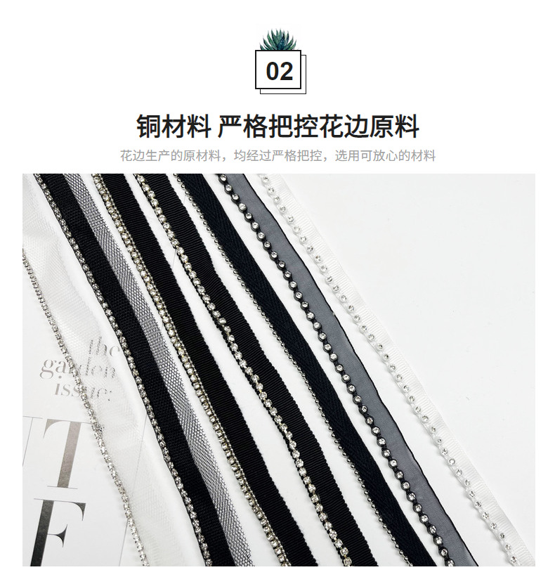 Zixin Garment Accessory Co., Ltd. is a one-stop shop for processing and customizing, with its sales department located in Zone 4 of the Yiwu International Commerce City. With over a decade of experience in lace, the company specializes in a wide range of lace clothing accessories, including fringes, beaded edges, tassels, hand-crafted lace, cotton lace, sequined lace, small chic ethnic woven belts, gold and silver flat lace, chain lace, and welcomes all buyers to place orders and customize.