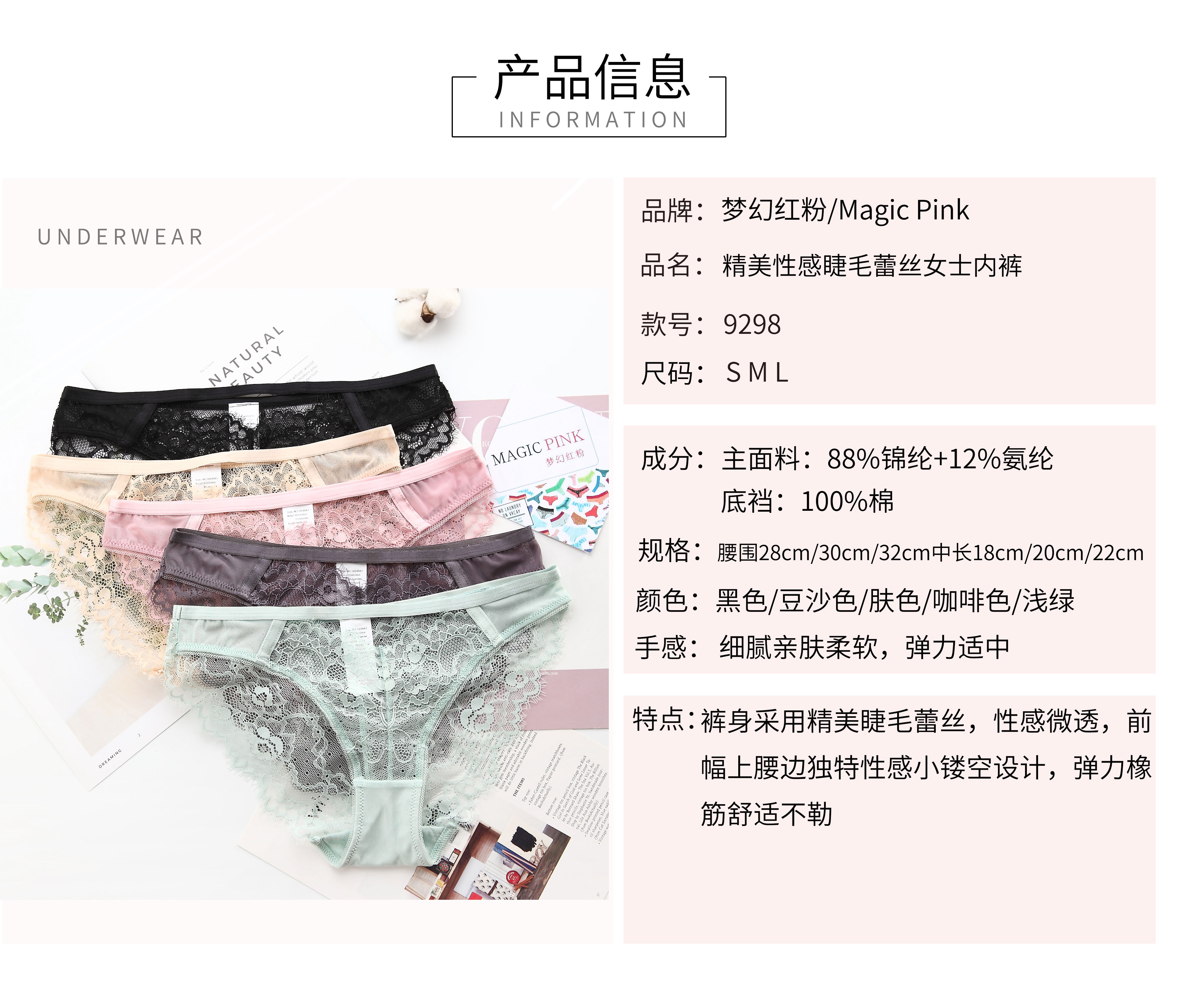9298 magical box mystery lace sexy comfortable breathable lightweight eyelash lace briefs 中文版
