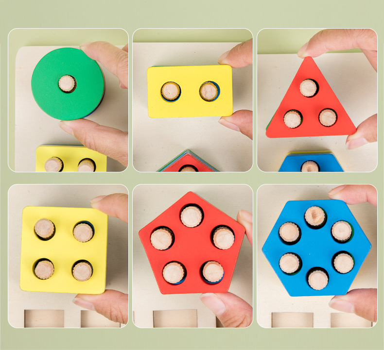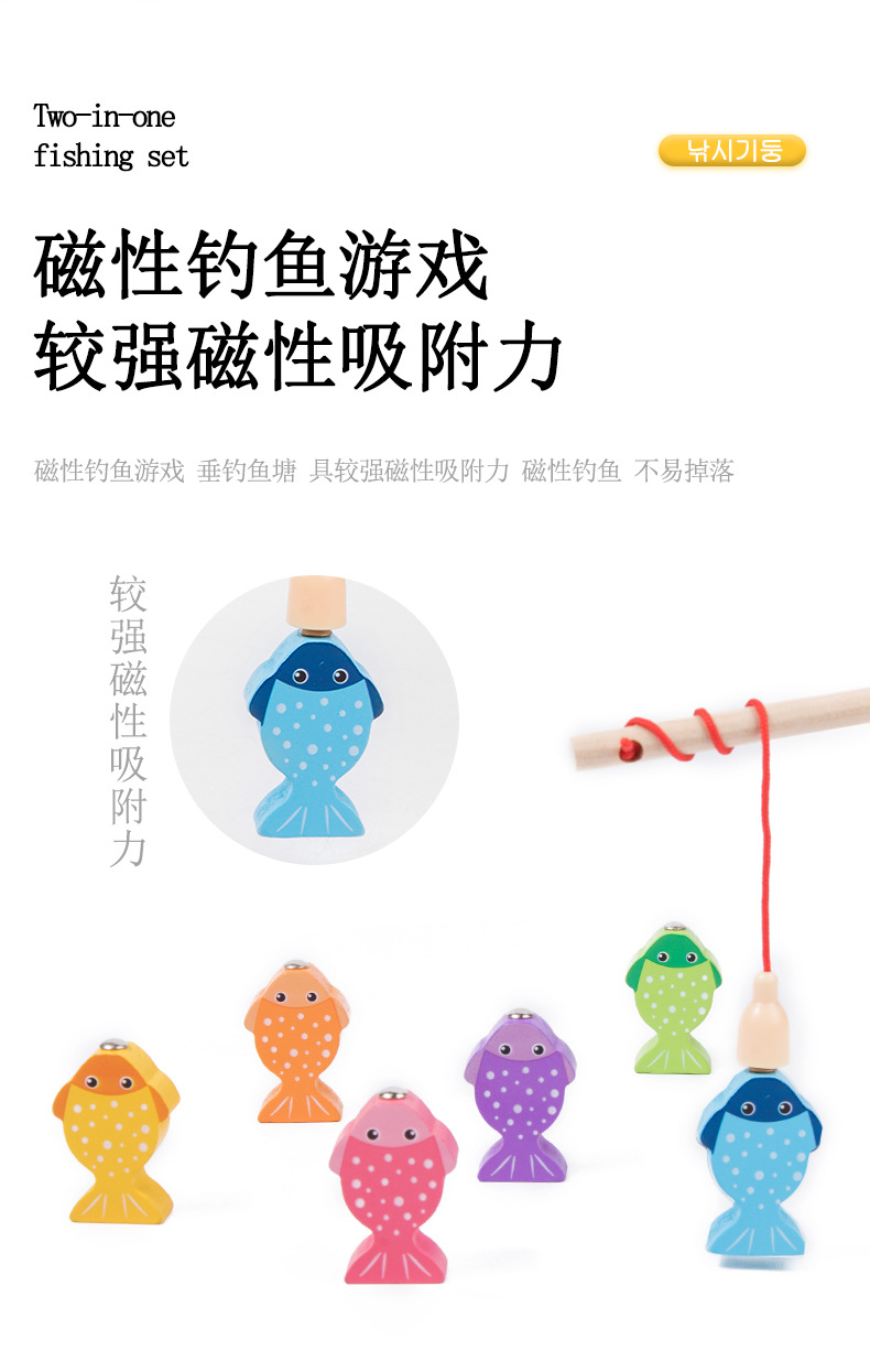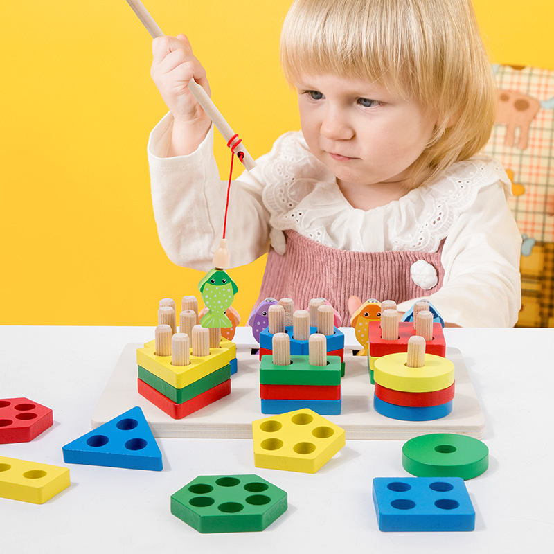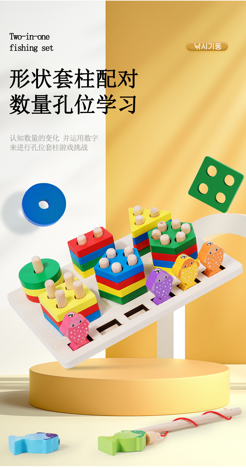 montessori early education two-in-one fishing shape six sets of columns young children color cognition matching wooden toys wholesale