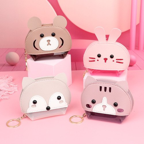creative new pu leather animal coin purse keychain hollow cartoon children small zip wallet pvc coin bag
