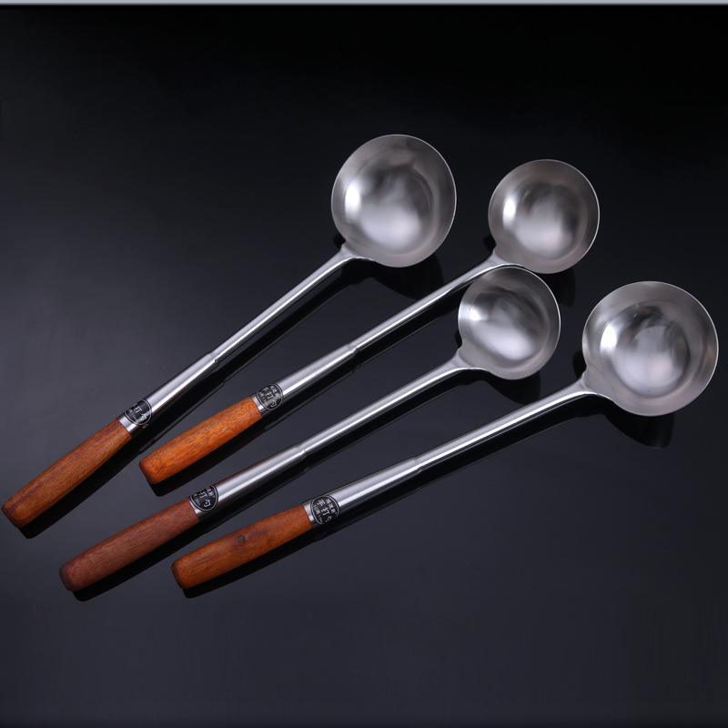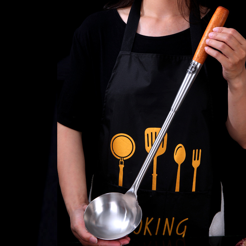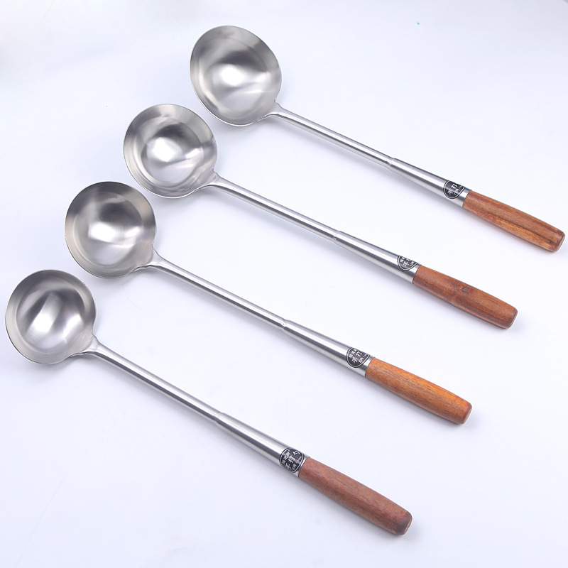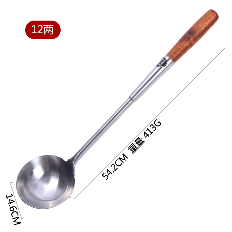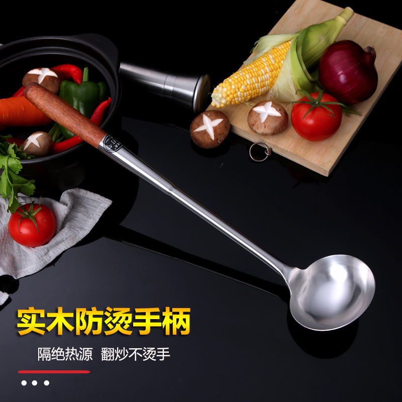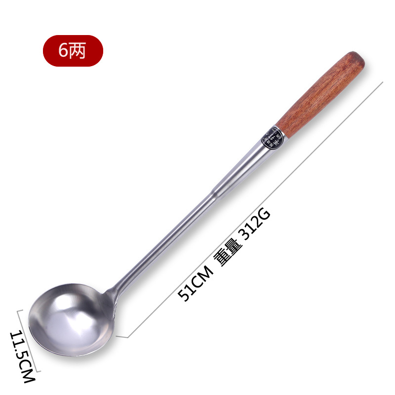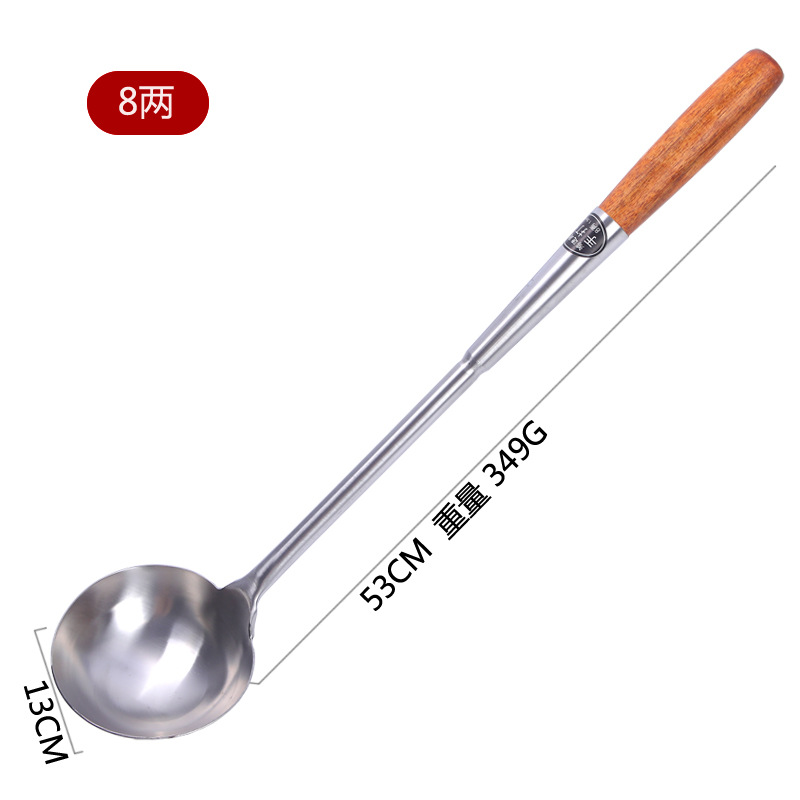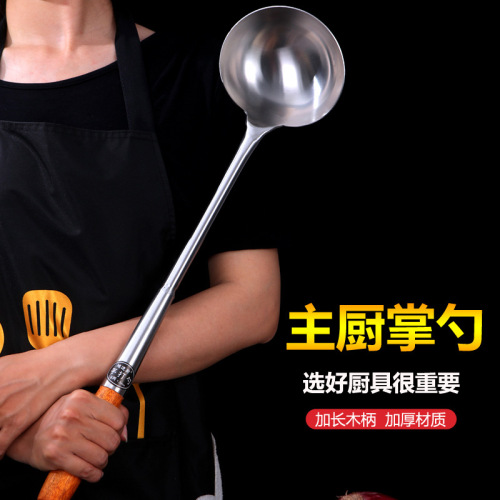 hz35 stainless steel shovel chef cooking spoon long handle spatula extra long plus size shovel kitchen wooden handle spoon