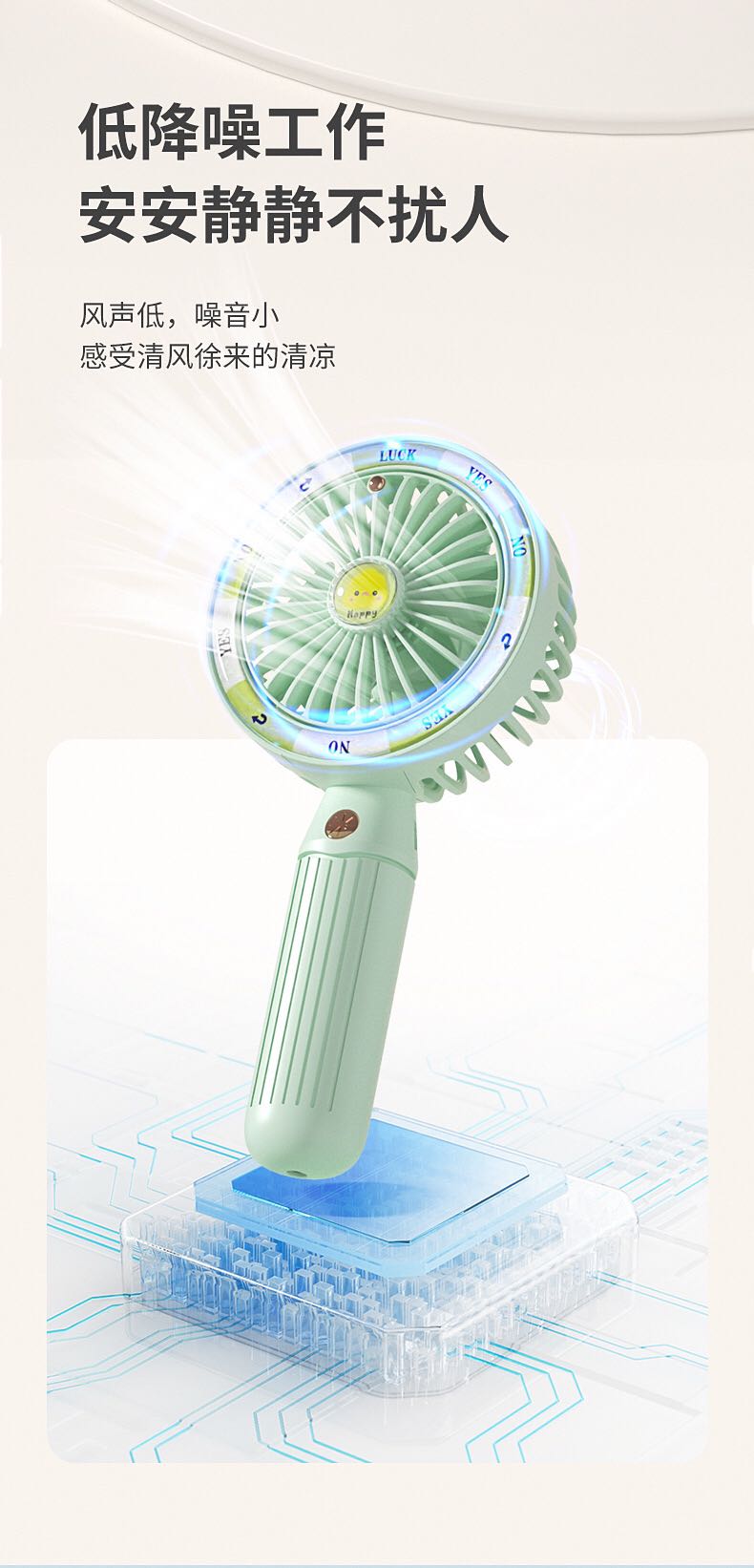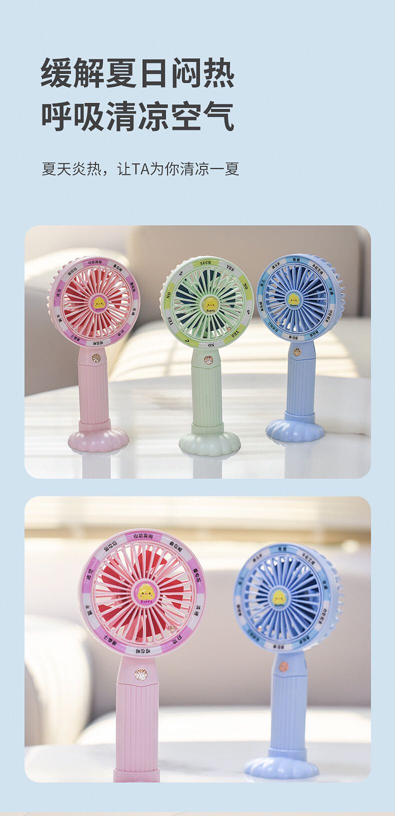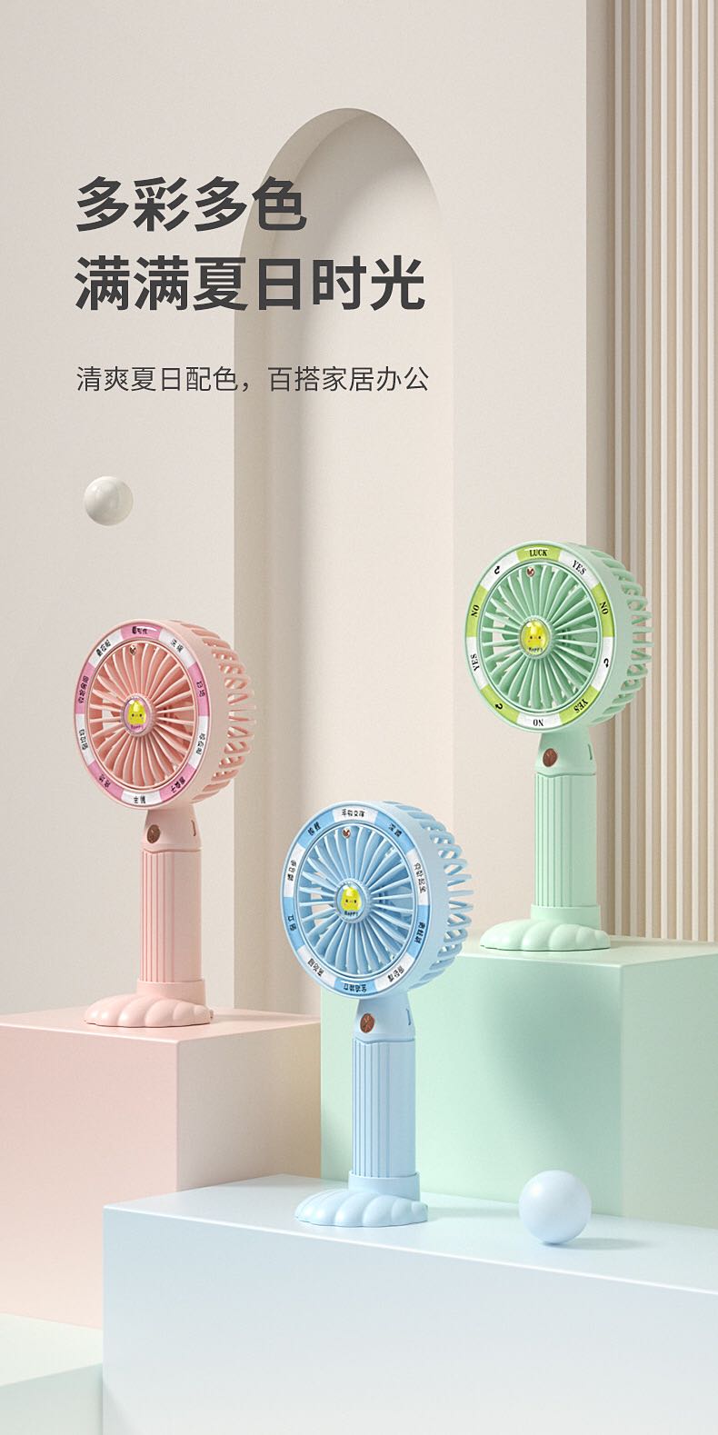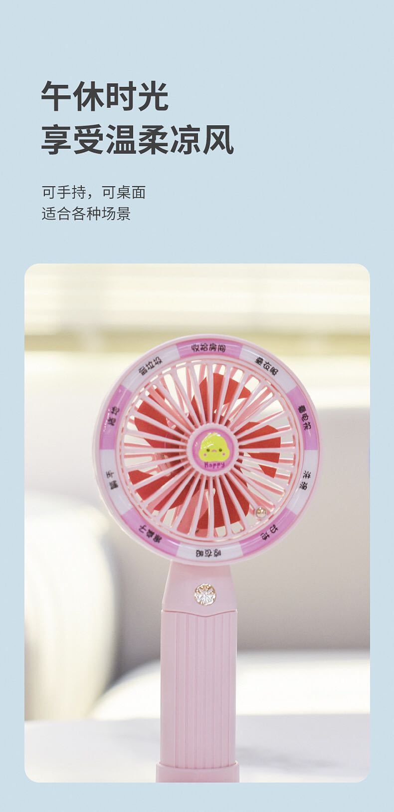 2023 new usb rechargeable desktop handheld mini multi-function electric mini little fan cute student gift 中文版