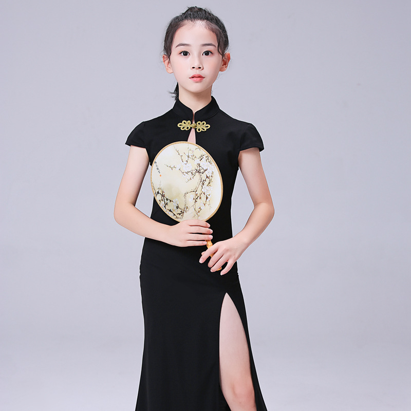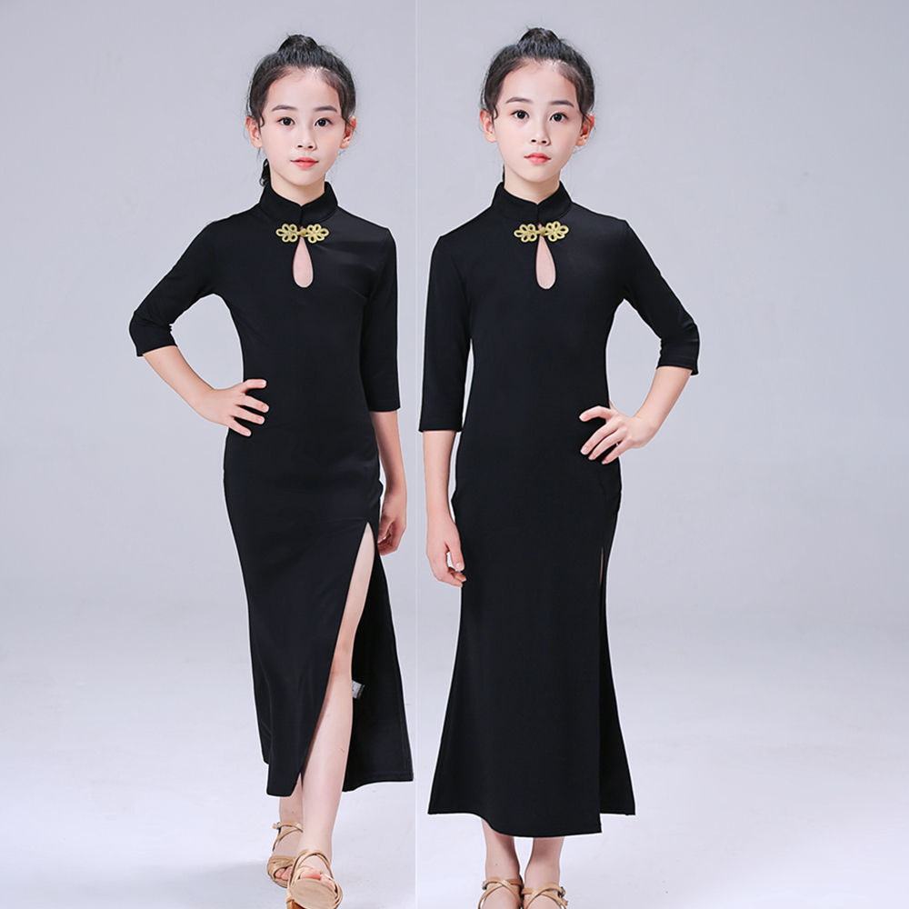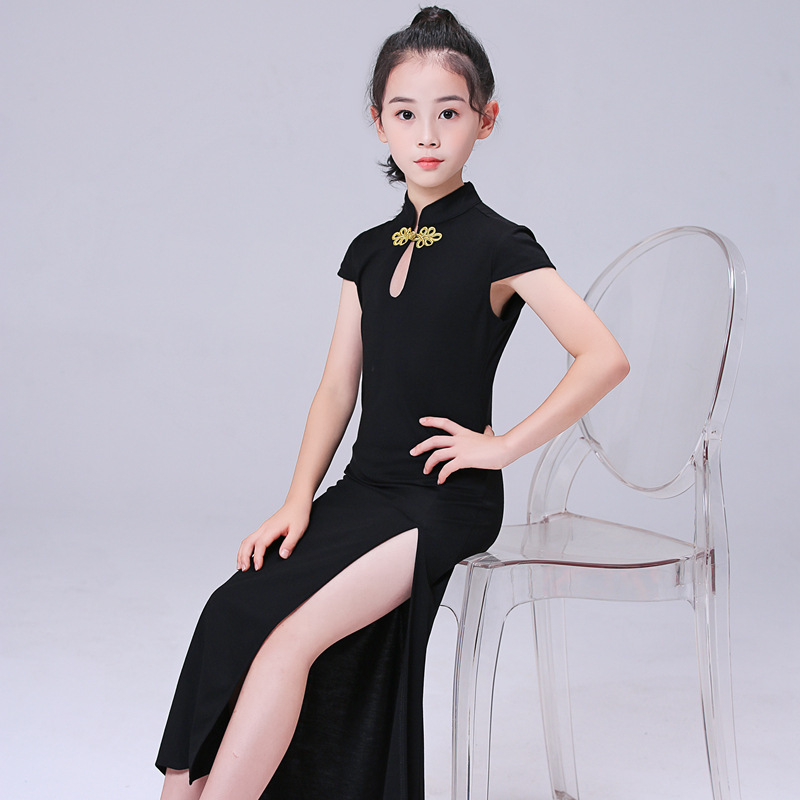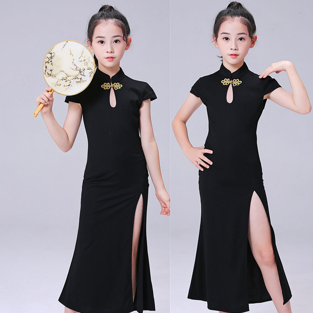 Children's Model Performance Costume Cheongsam Training Wear Ethnic Style Girls' Body Etiquette Clothing Summer Short Sleeve TT Table Less 中文版