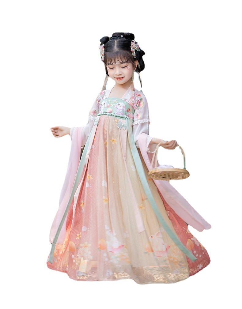New Girls' Han Chinese Costume Spring Children's Chinese Style Improved Ancient Costume Embroidery Super Fairy Original Jacket and Dress Dress Wholesale 中文版