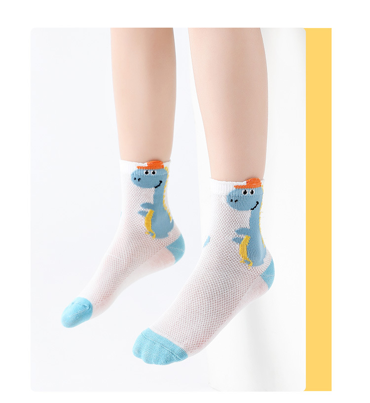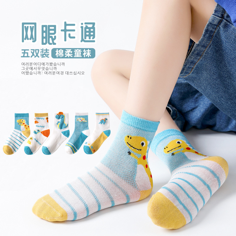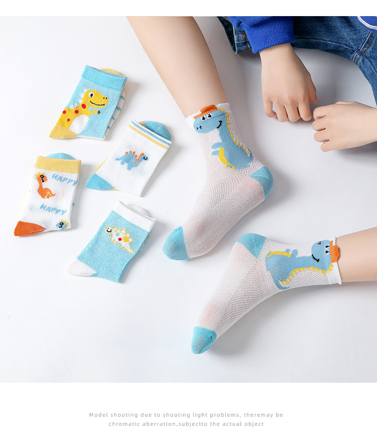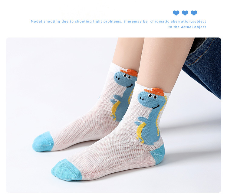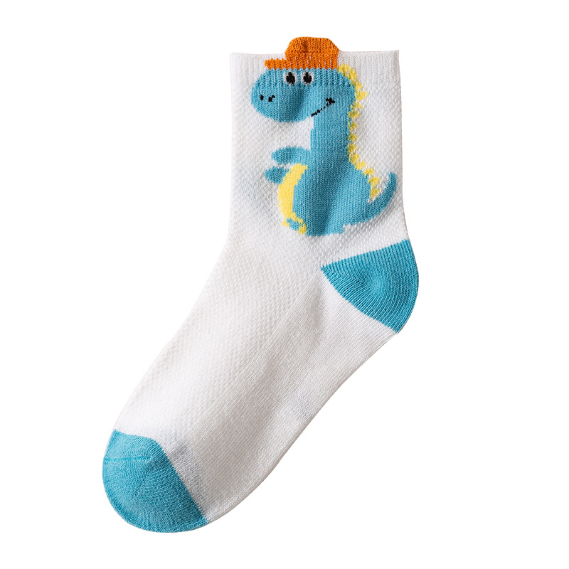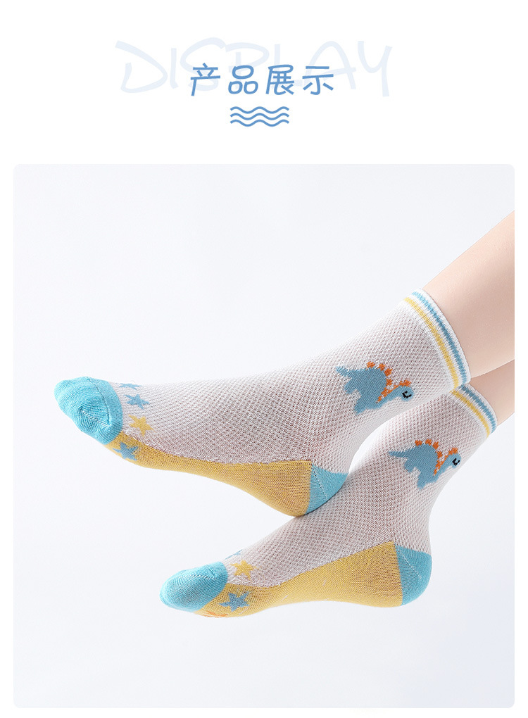 Children's Socks Summer Thin Cotton Summer Sports Boys Girls Breathable Mid-Calf Socks Cartoon Dinosaur Mesh Stockings 中文版