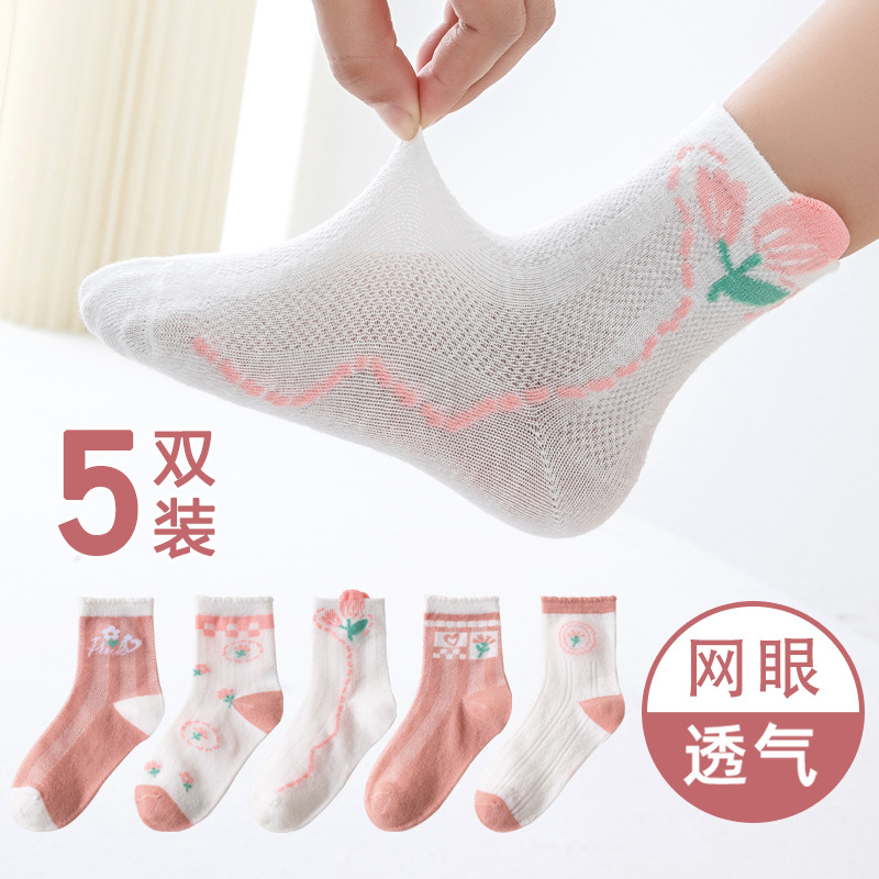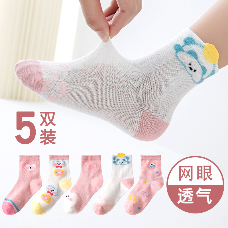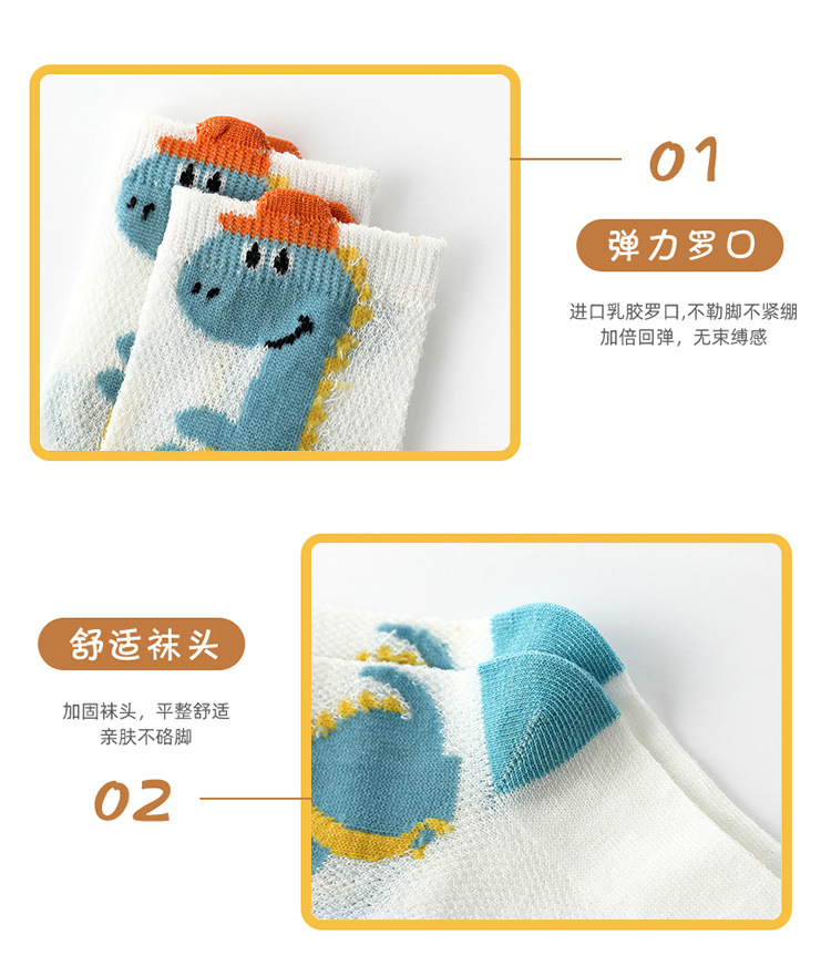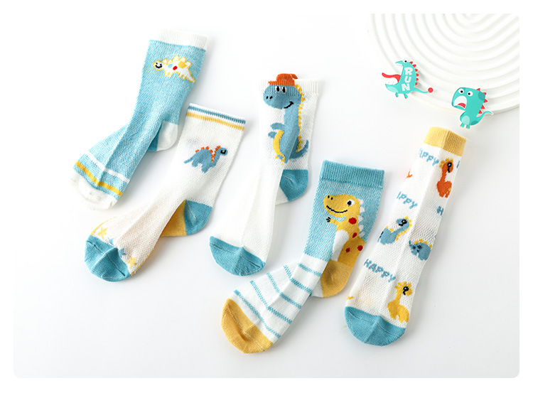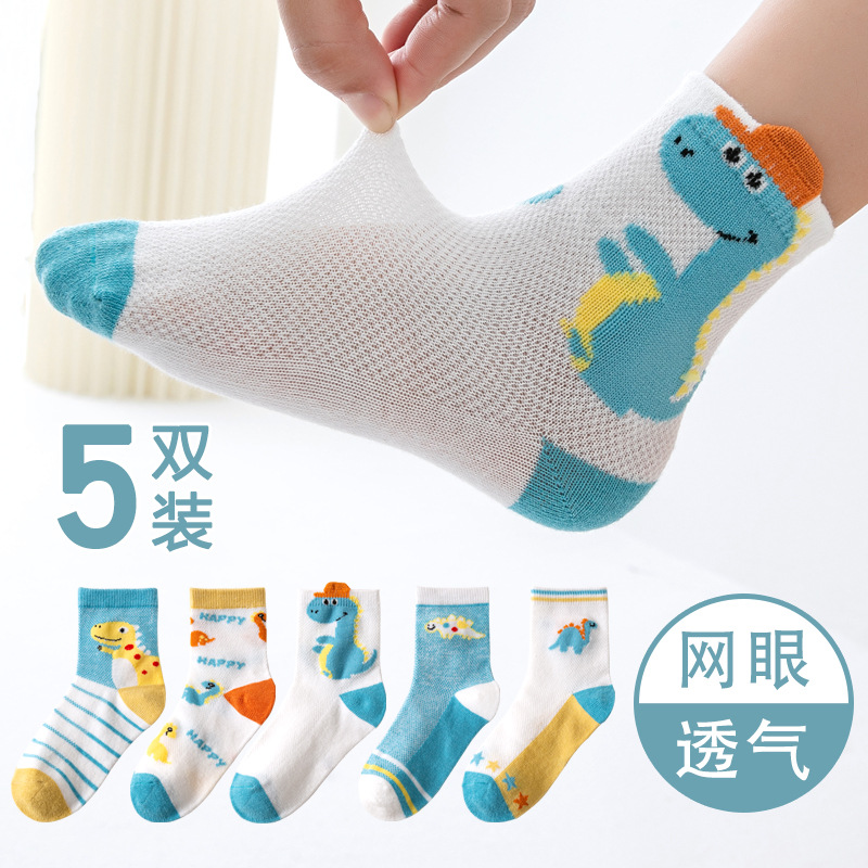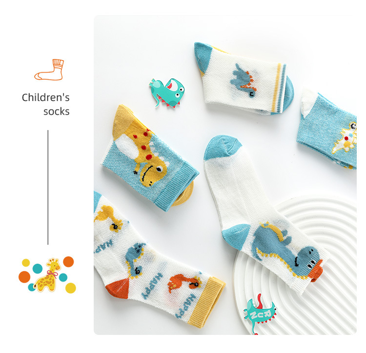 Children's Socks Summer Thin Cotton Summer Sports Boys Girls Breathable Mid-Calf Socks Cartoon Dinosaur Mesh Stockings 中文版