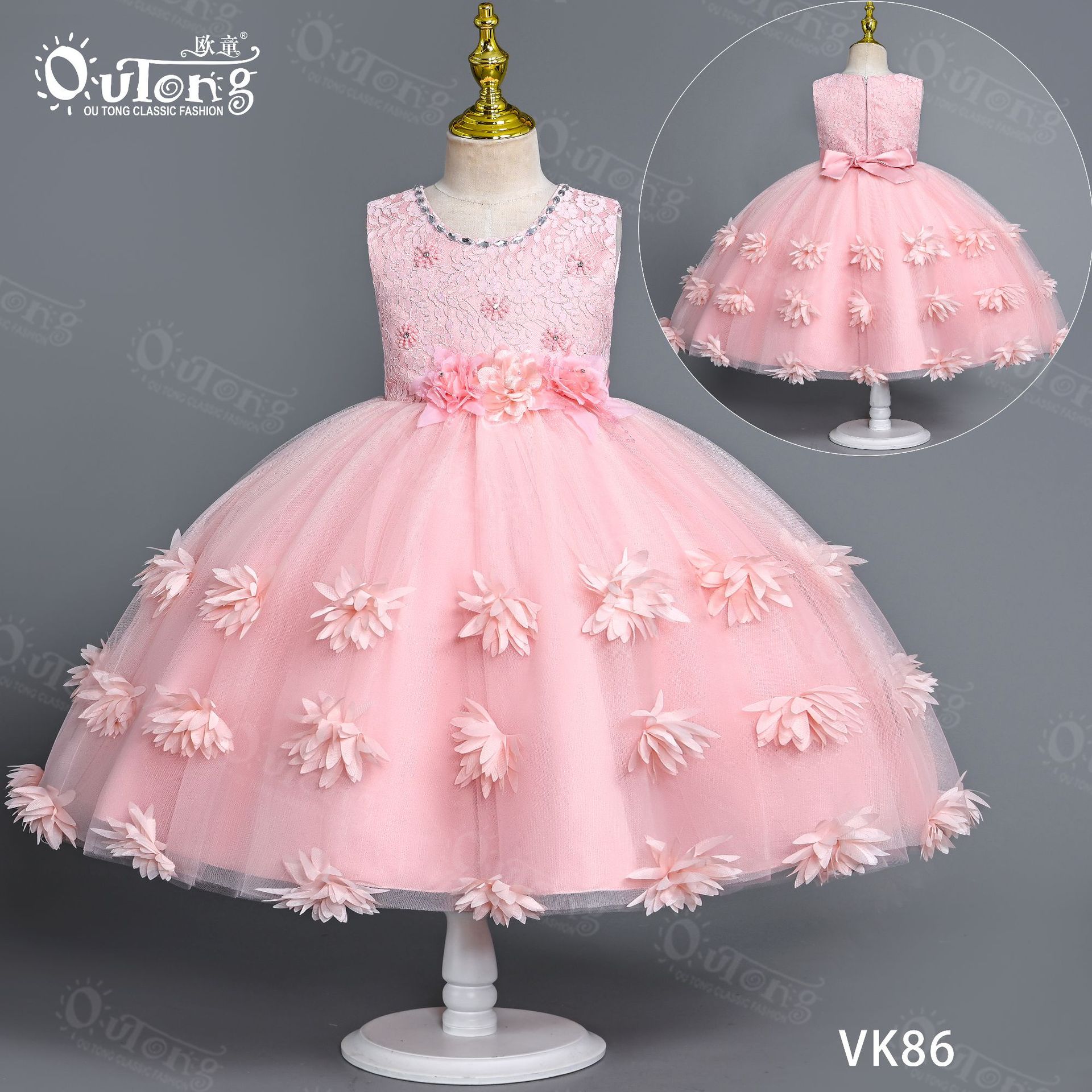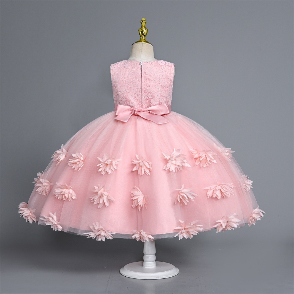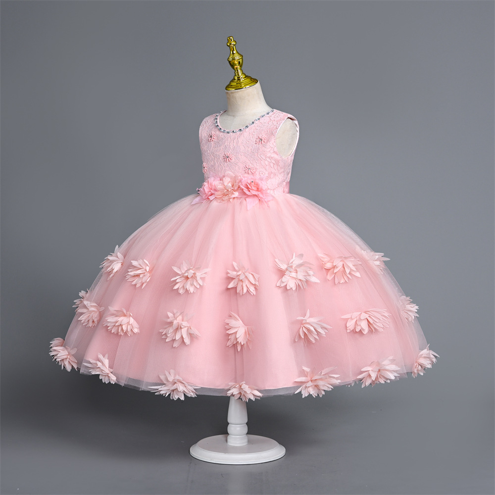 2023 New Girls' Dress Solid Color Little Girl Dresses of Bride Fellow Kids Vest Mesh Children Full-Year Princess Dress Summer 中文版