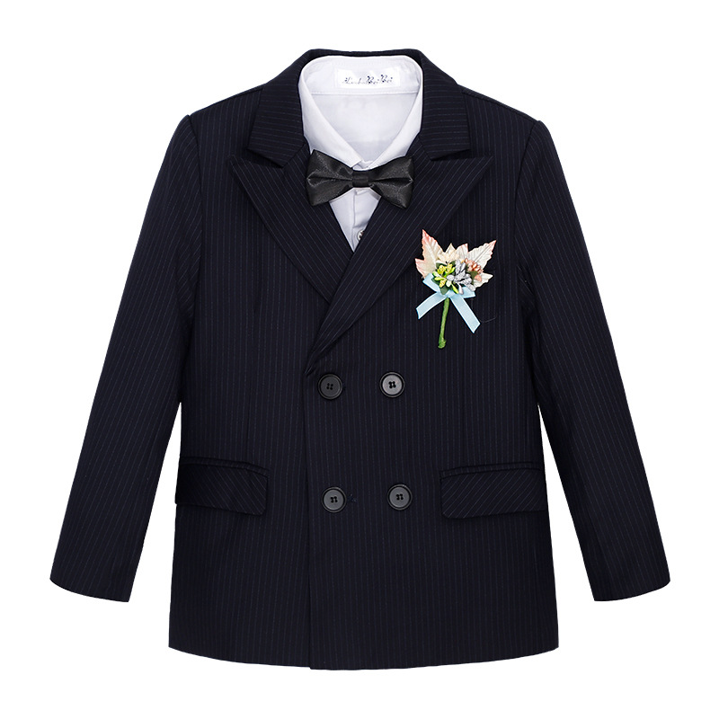 Boy's Suit Autumn and Winter New Style Fat Version Gentleman Striped Suit Medium and Big Children Host Performance Dress plus-Sized 中文版