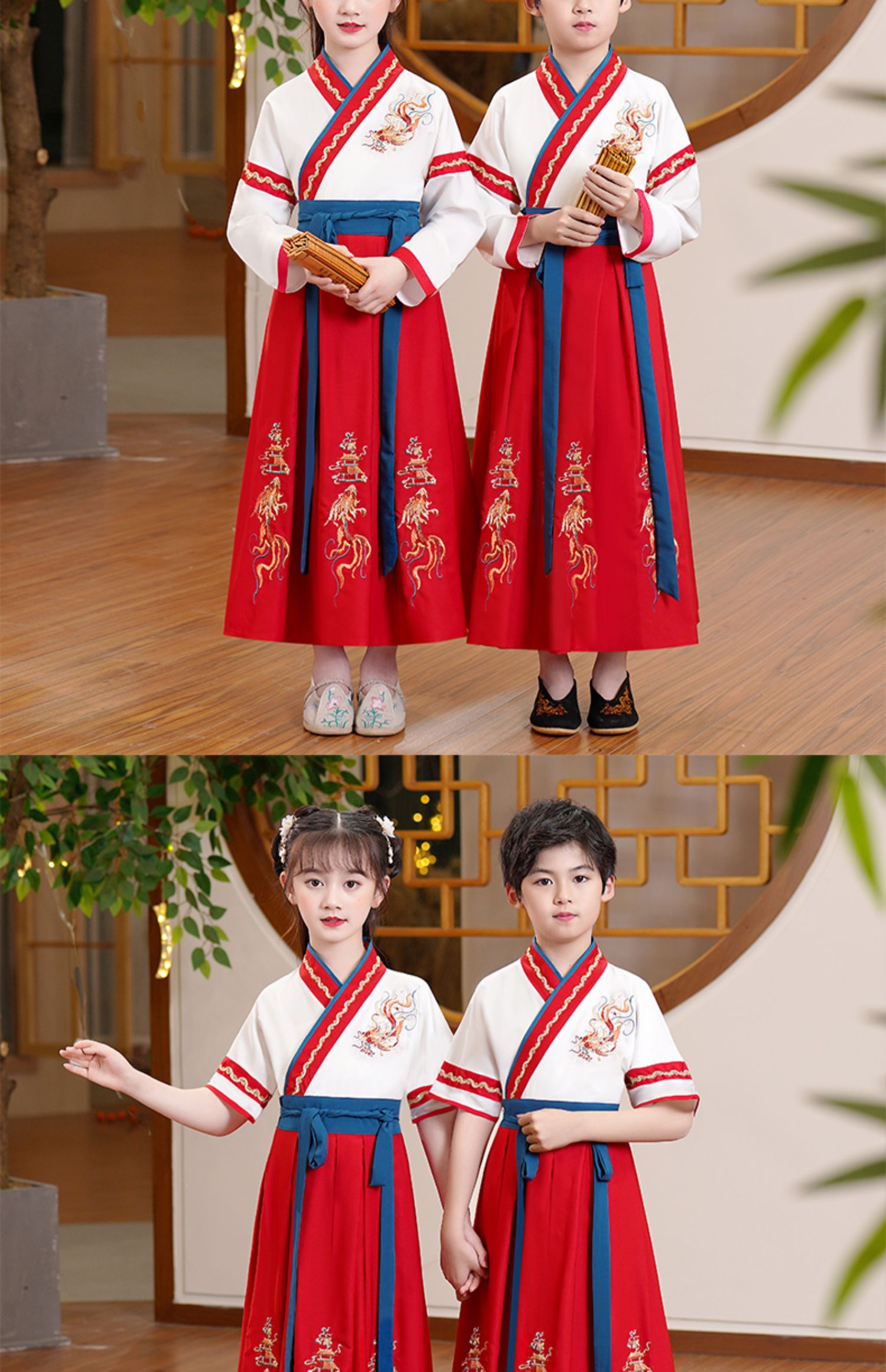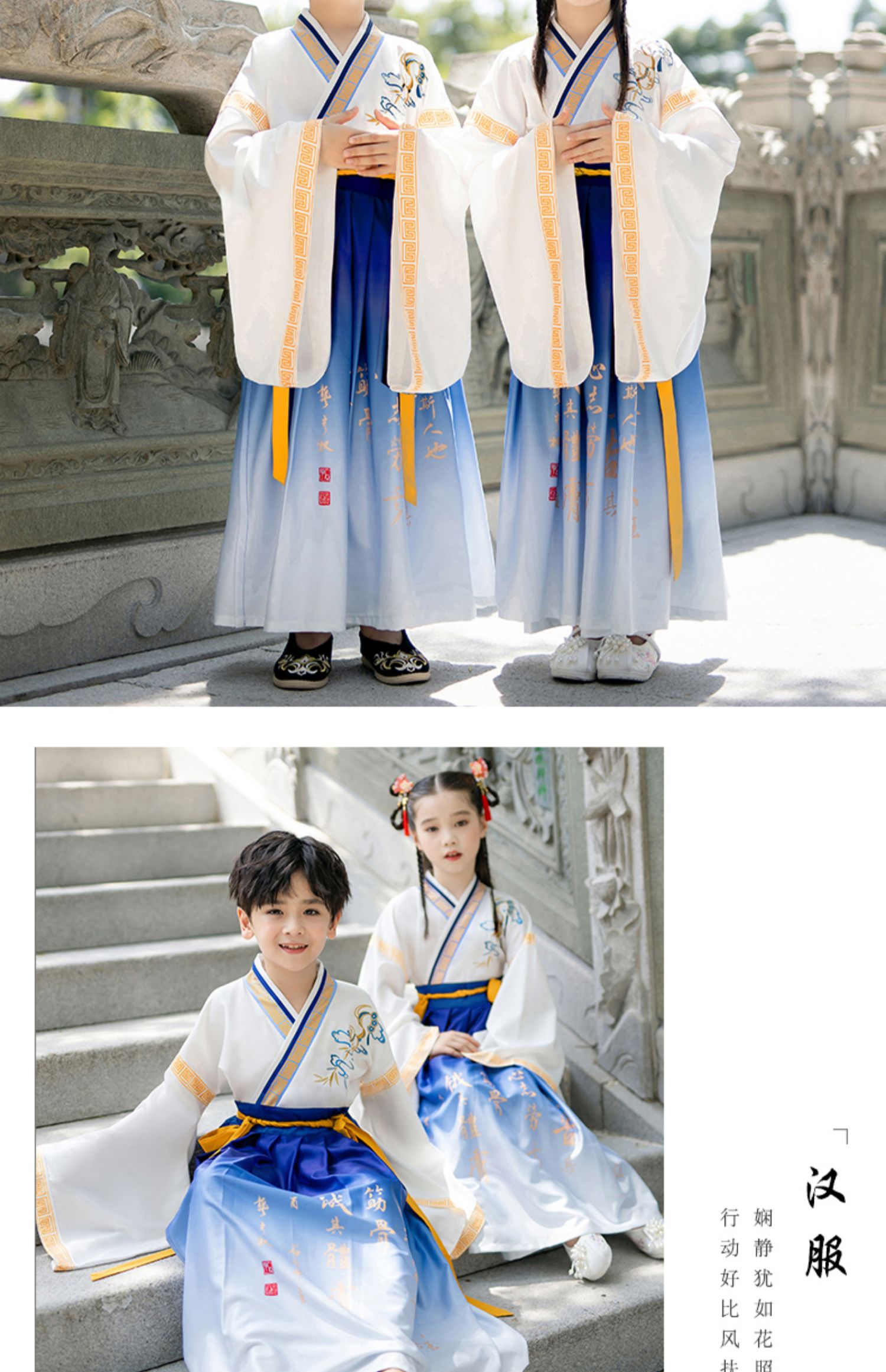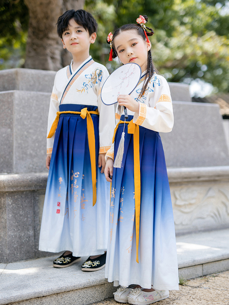 Hanfu Boys Chinese Classics Suit Chinese Style Children's Performance Wear Spring and Summer New Three-Character Sutra Performance Costumes National Fashion Ancient Costume 中文版