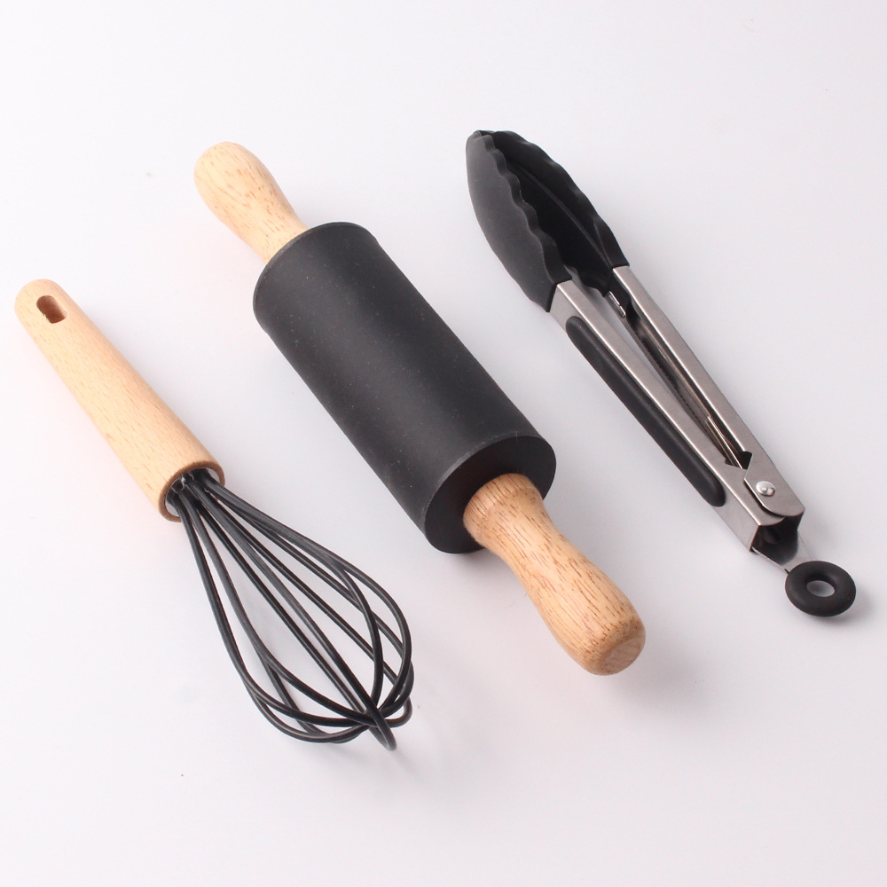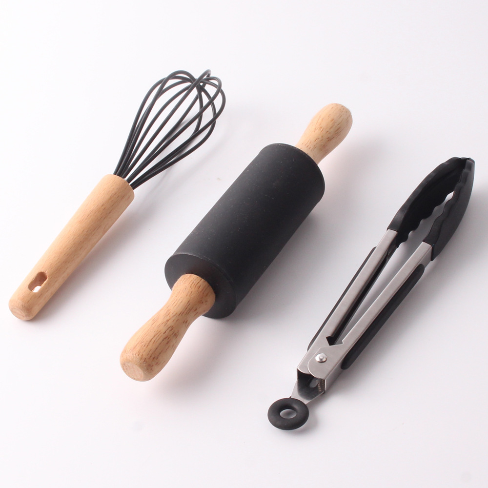 Silicone Flour Brush: FDA Silicone + Rubberwood Whisk: FDA silicone + rubber wood + 201 wire (5 wires) Food Pick: 430 + FDA Silicone + TPR Anti-skid Strip |
