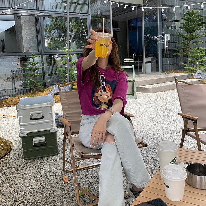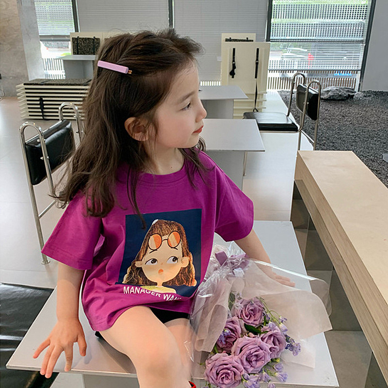 Girls' Korean-Style Mid-Length T-shirt 2023 New Spring Parent-Child Clothes Short-Sleeved T-shirt Summer Medium and Large 中文版