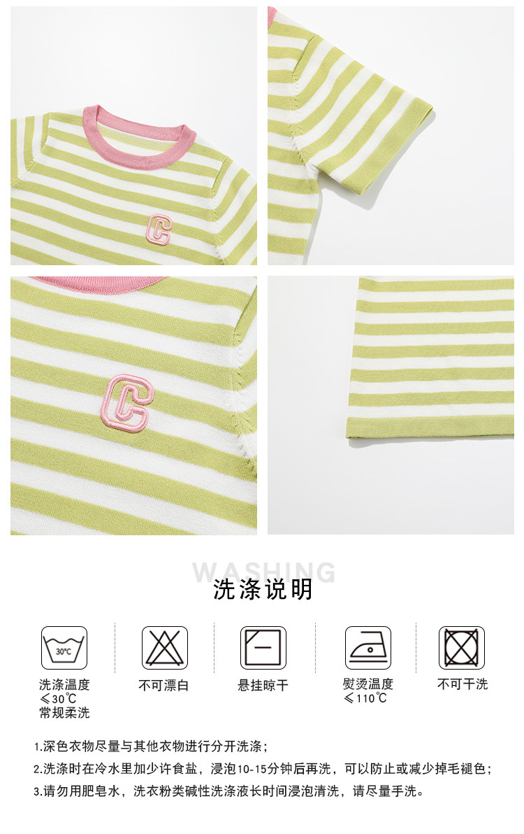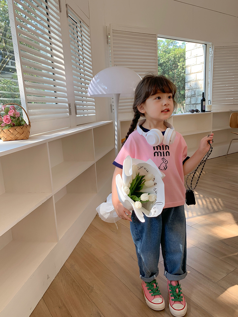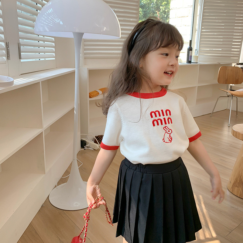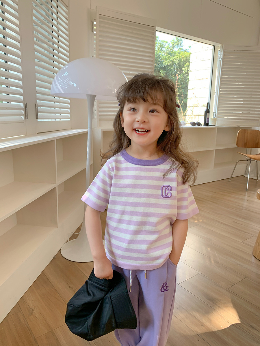 2023 Spring New Girls' Short-Sleeved T-shirt Mixed Color Stripe Children's T-shirt Short-Sleeved Korean Style Fashion Baby T-shirt 中文版