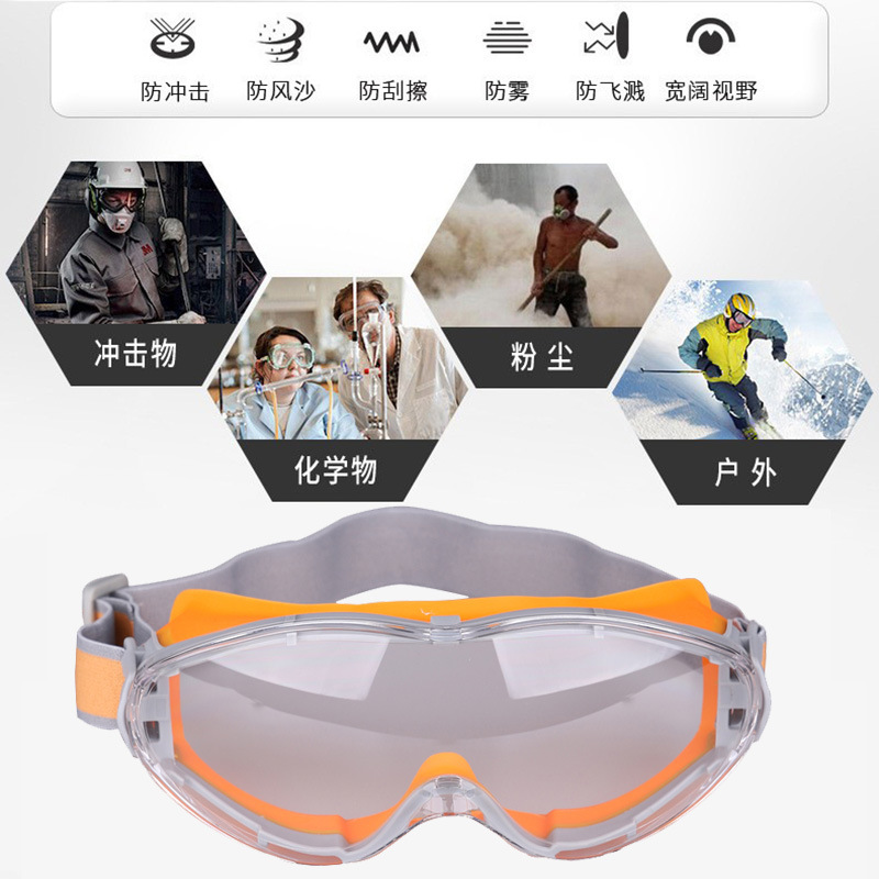 Fully Enclosed Anti-Impact Dustproof Anti-Fog Windproof Goggles Outdoor Anti-Splash Labor Protection Eye Mask 中文版