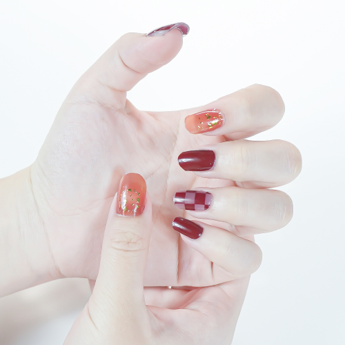 red and white plaid orange gold silk self-adhesive nail art decorative stickers color nail art stickers for nails 中文版