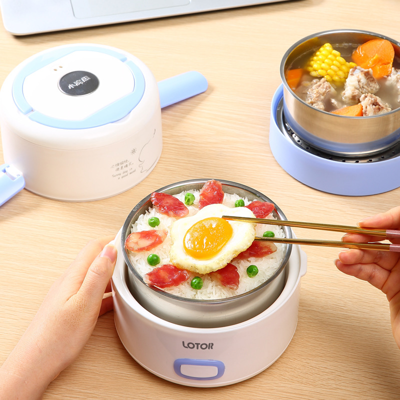 hz593 electric lunch box independent double-layer heating lunch box 304 stainless steel liner insert electric lunch box rice cooker