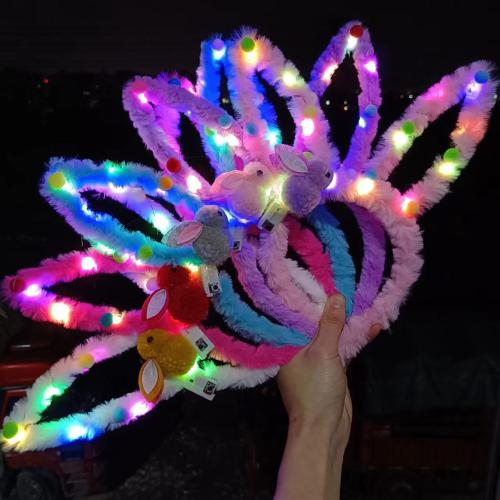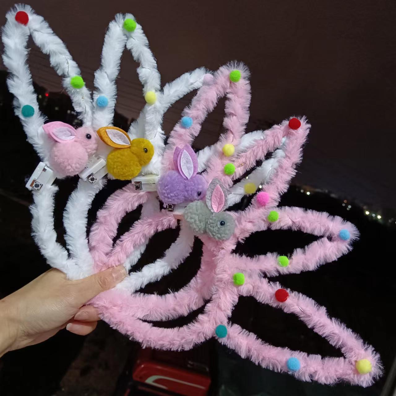 luminous rabbit fur ball fluffy hair band mixed color