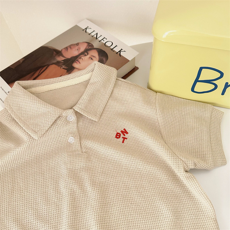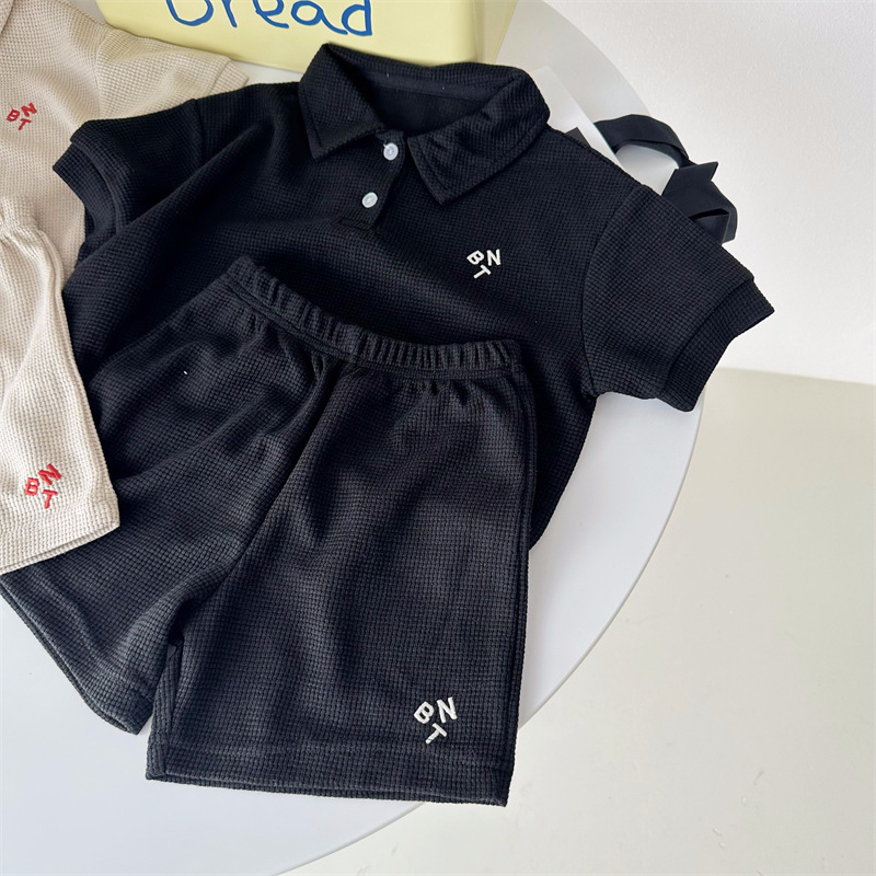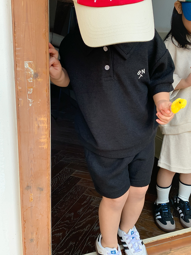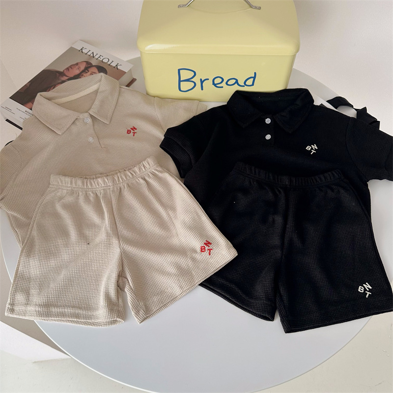 Children's Clothing Children's Suit Summer New Korean Style Children's Clothing Baby Waffle Shirt Suit Girls' Shorts Two-Piece Suit 中文版