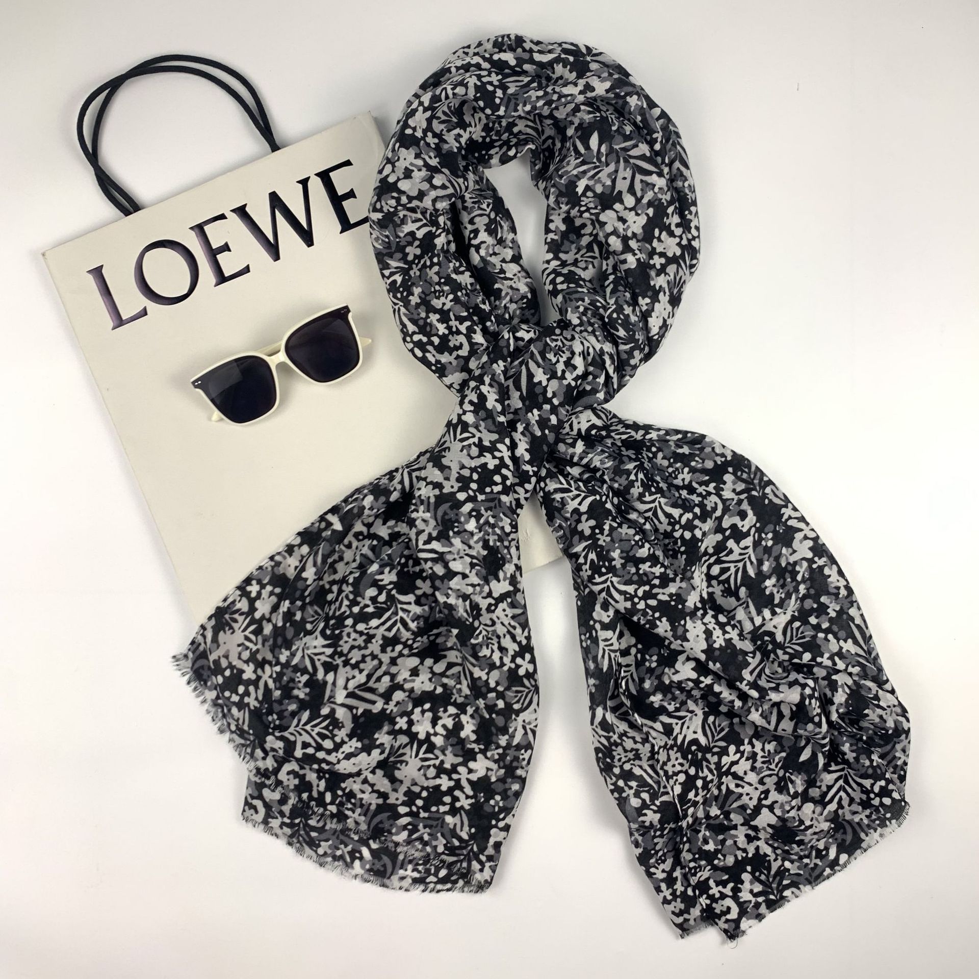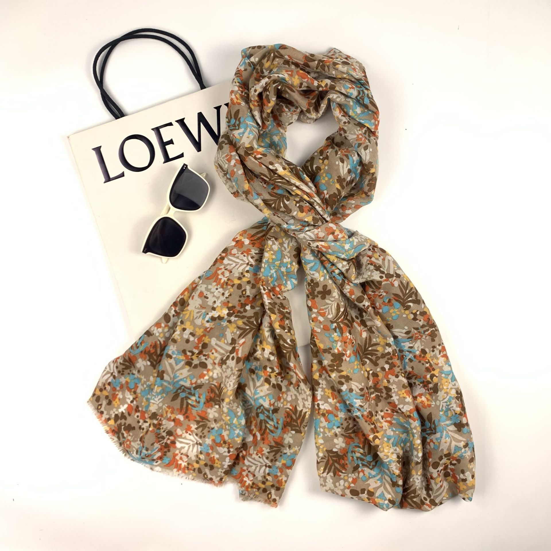 2023 new satin chiffon drape long towel snow point vanilla flower ladies cross-border wholesale factory direct sales high sense