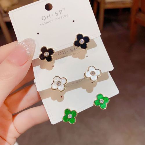 sterling silver needle french natural shell exquisite four leaf ear studs ear clip elegant high sense earrings wholesale