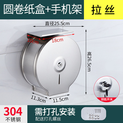 304 stainless steel toilet paper box large round roll tissue box hotel public toilet toilet square tissue box