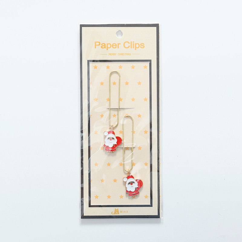 Creative Cartoon Christmas Tree Set Student Stationery Santa Claus Alloy Bookmark Elk Bell Golden Clip 中文版