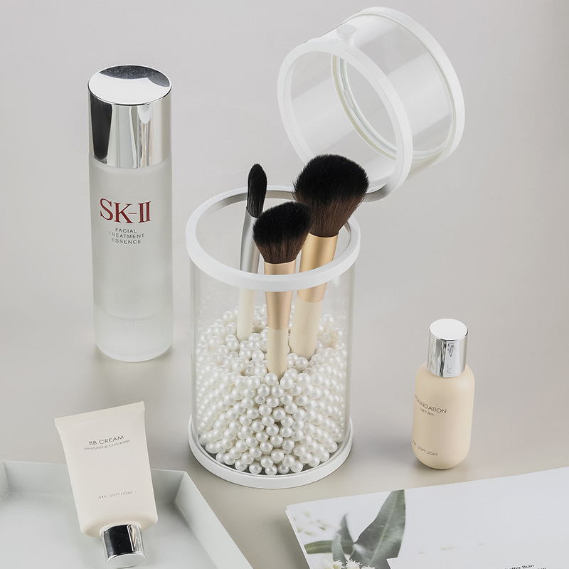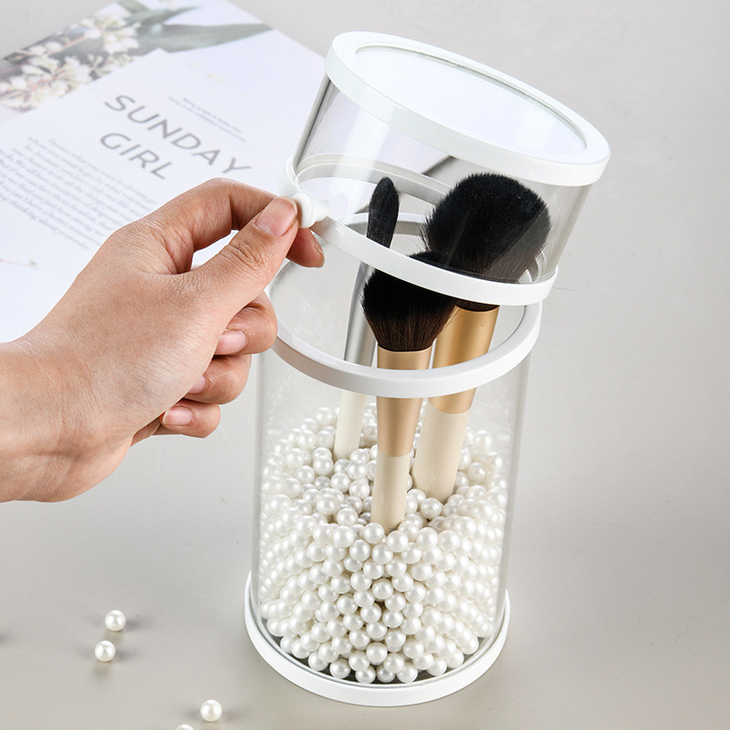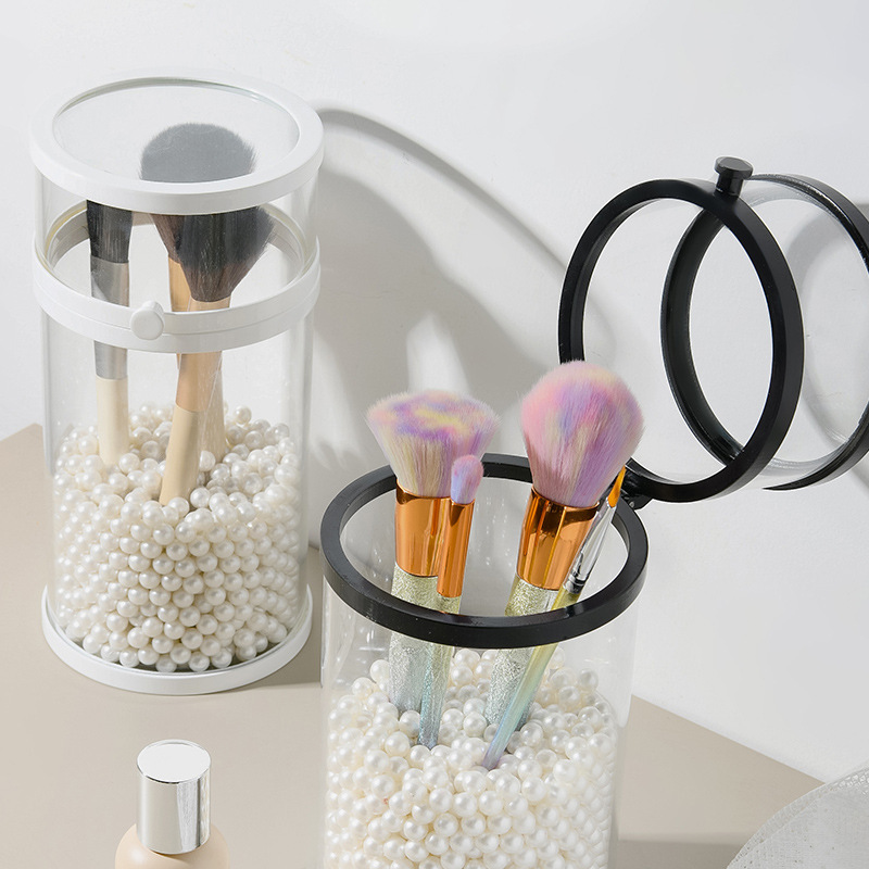Makeup Brush Storage Bucket Beauty Brush Storage Box Brush Tube round Dustproof with a Cover Plastic Edge Glass Make-up
