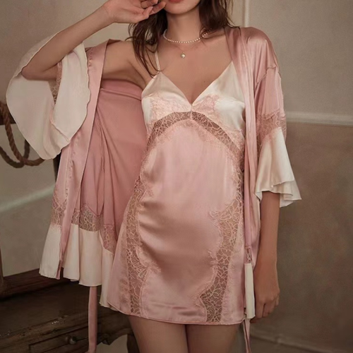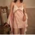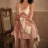fantasy pink sexy pajamas women's summer pink lace strap nightdress ruffled nightgown silk morning gown 中文版